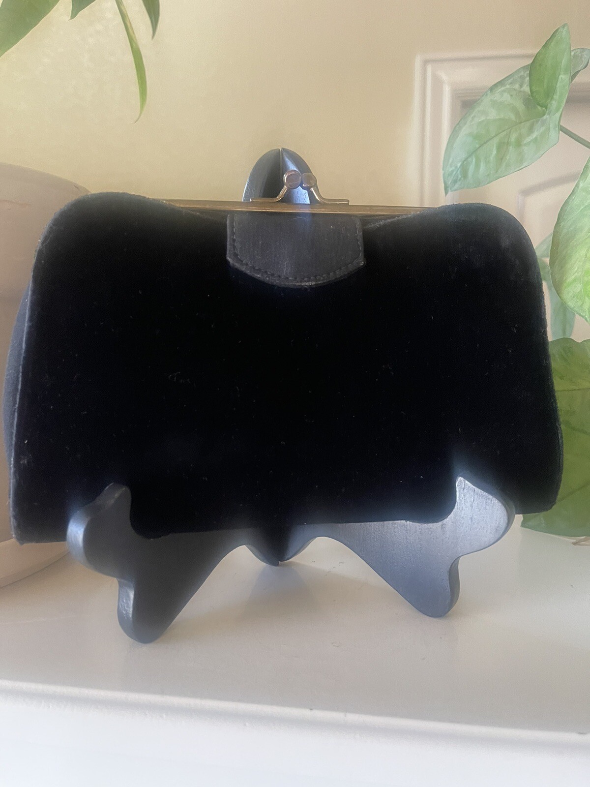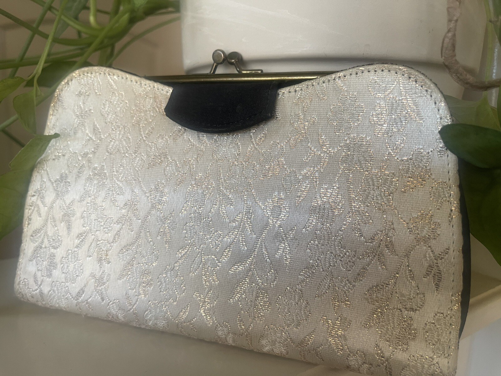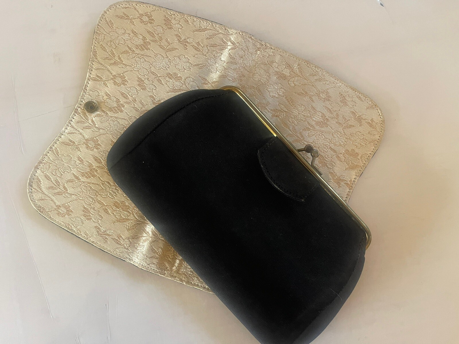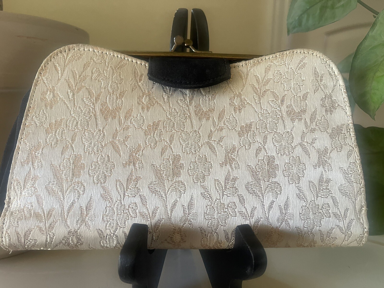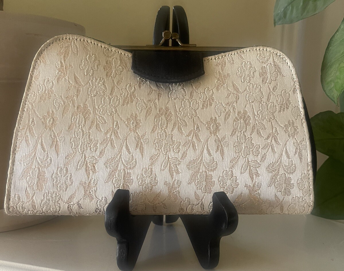 как выглядит Vintage 1950s Purse 2 N 1 Looks Jacquard Ivory Gold Black Velvet Clutch 9x5.5 фото