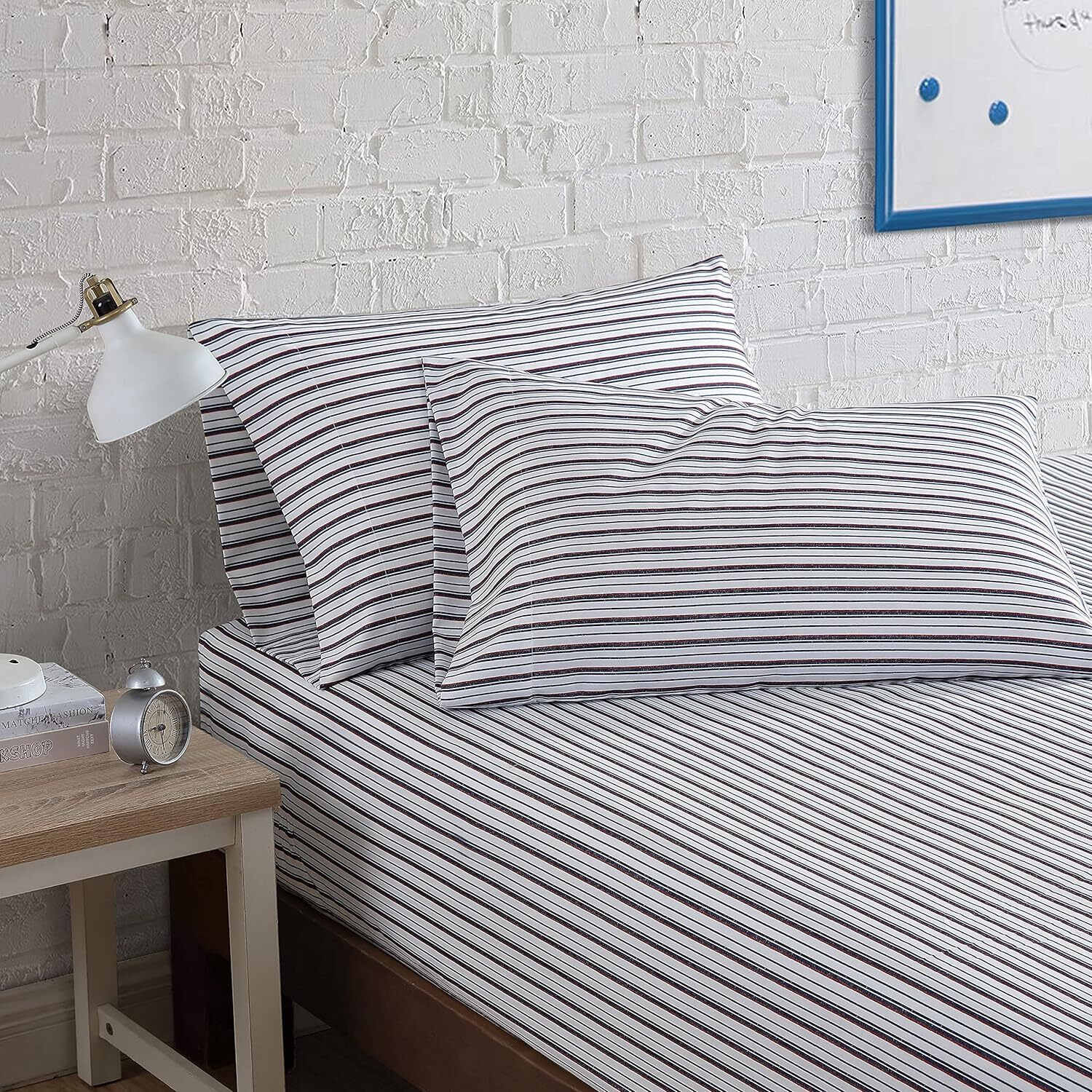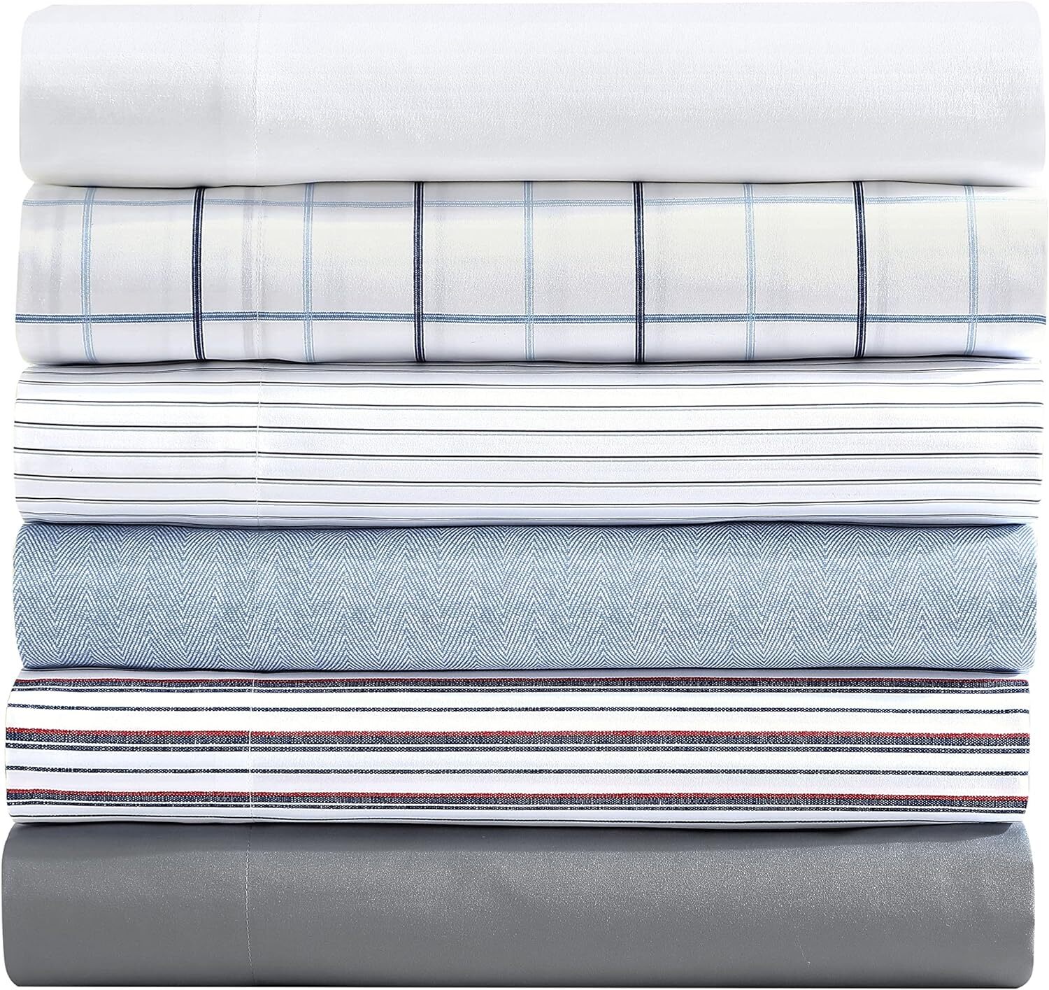 Nautica- Queen Sheet Set, Deep Pocket Fitted Queen, Aevery Stripe Navy/Red