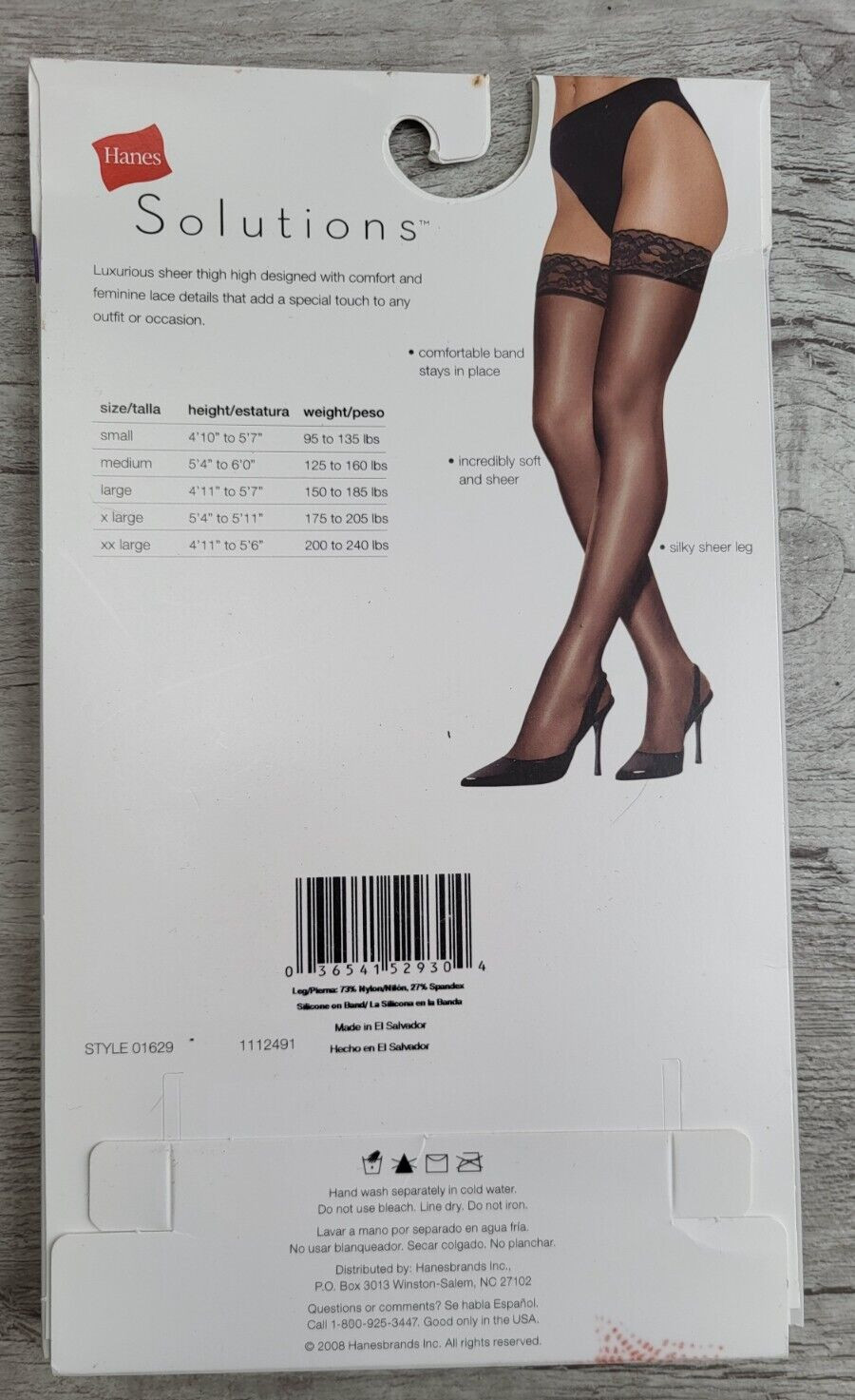New HANES THIGH HIGH STOCKINGS Black SMALL Silky Sheer LACE TOP Solutions