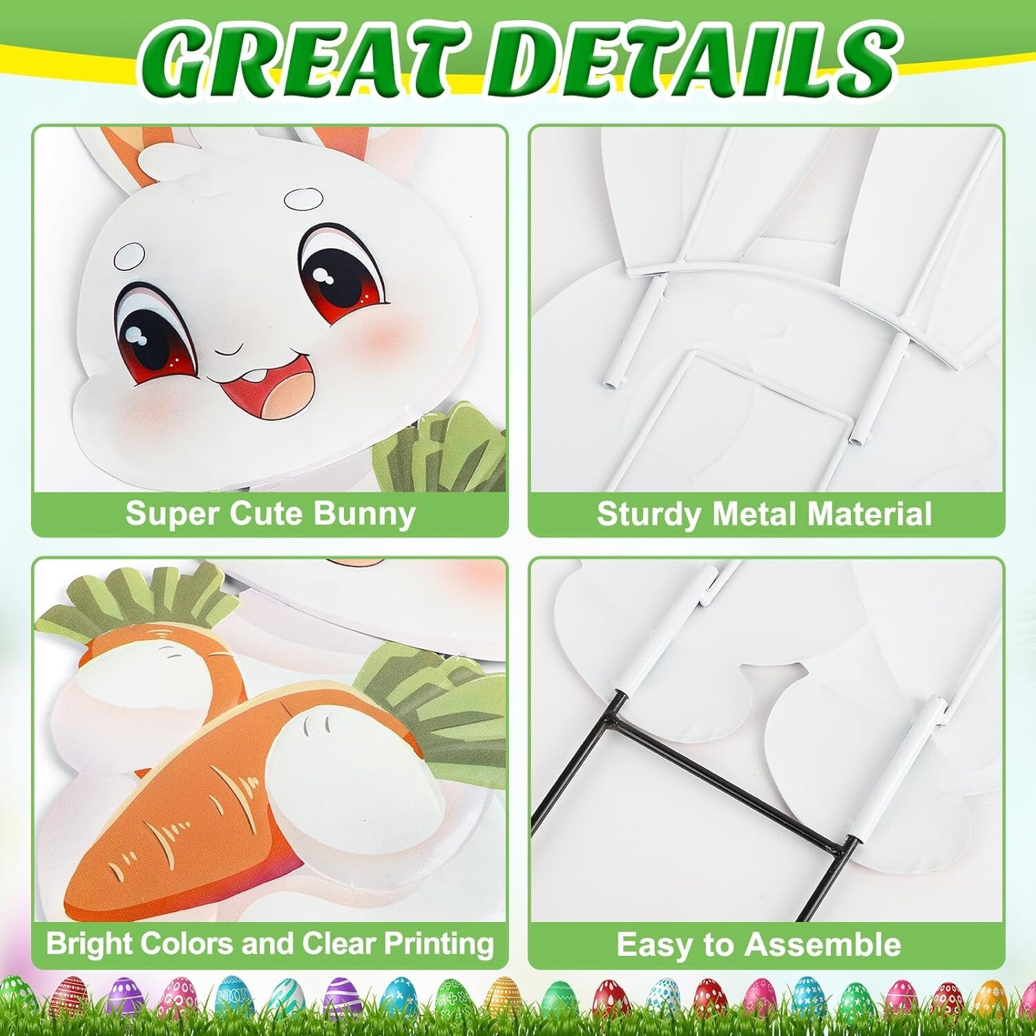 Metal Easter Yard Signs Decorations Outdoor 41.7H Cute Easter Garden Bunny