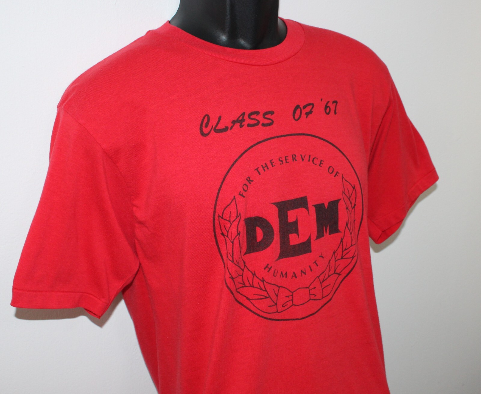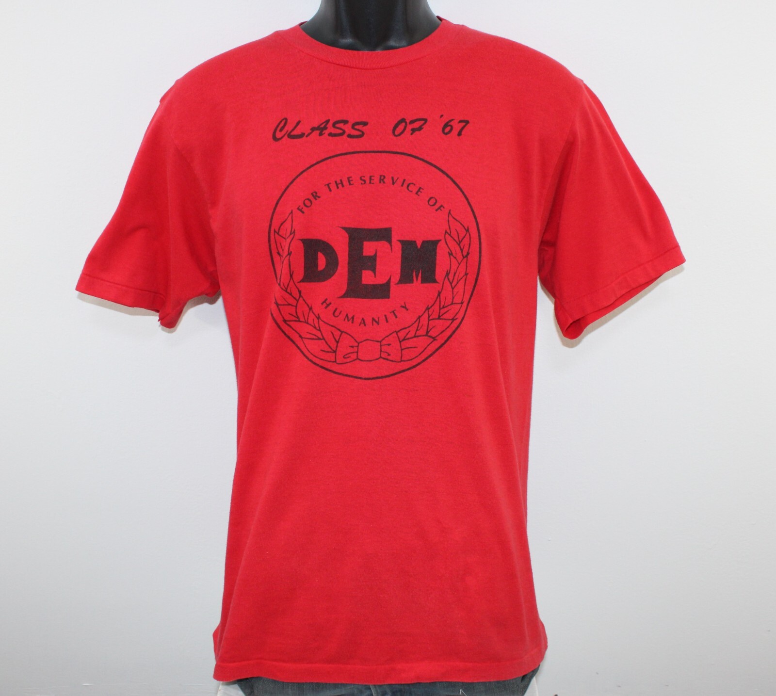 как выглядит 80s 90s Des Moines East High class of 67 vintage t-shirt red soft thin stretchy фото
