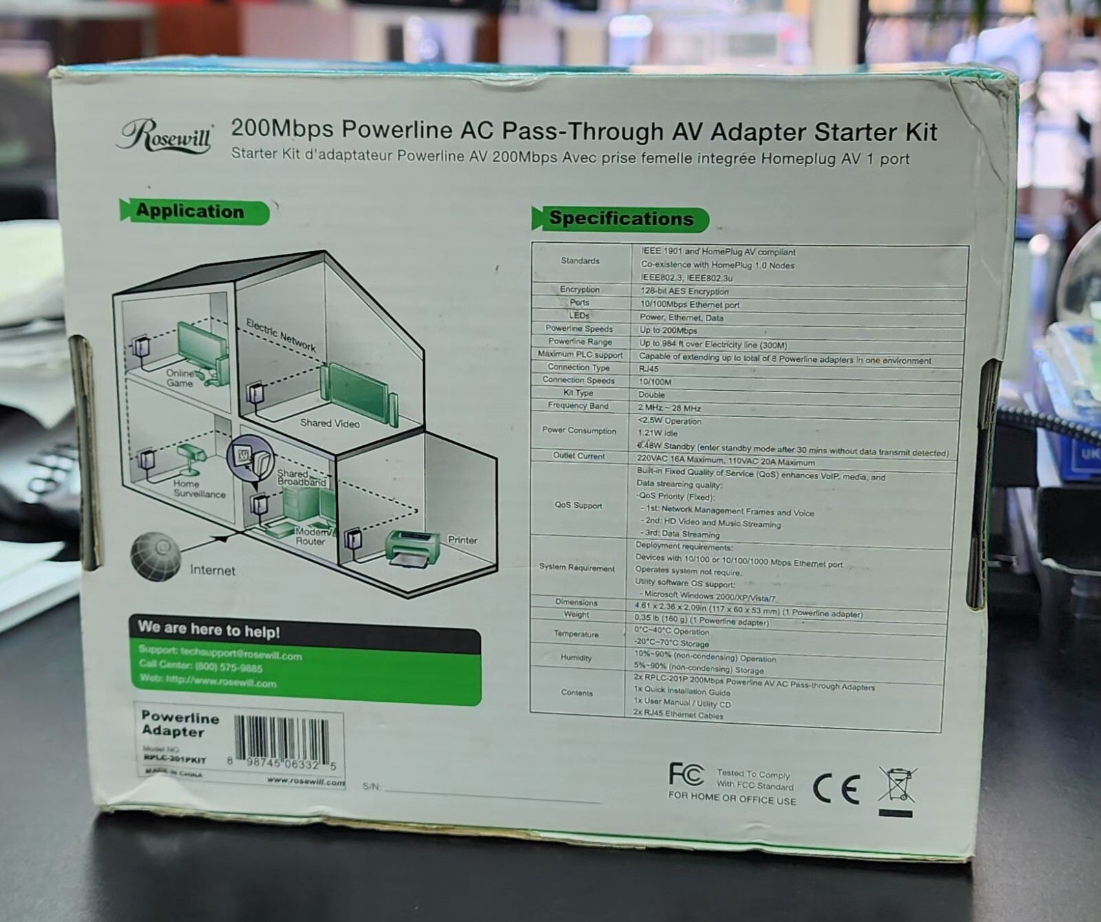 ROSEWILL RPLC-201PKIT 200Mbps Power line AC Pass Through AV Adapter Starter Kit