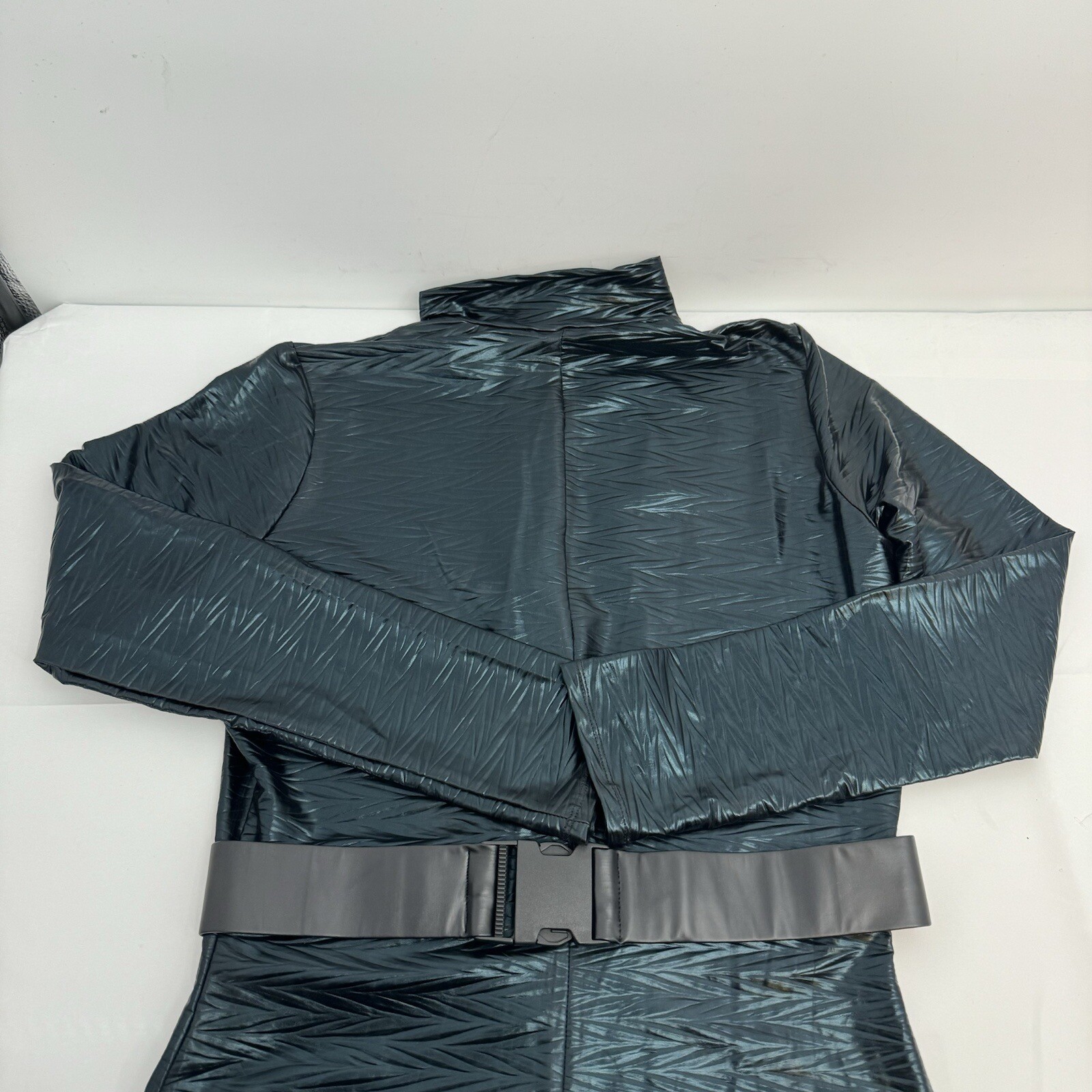 Metallic Long Sleeve Catsuit Body Suit Zip Front Costume 553458FN 1/2 X Belted