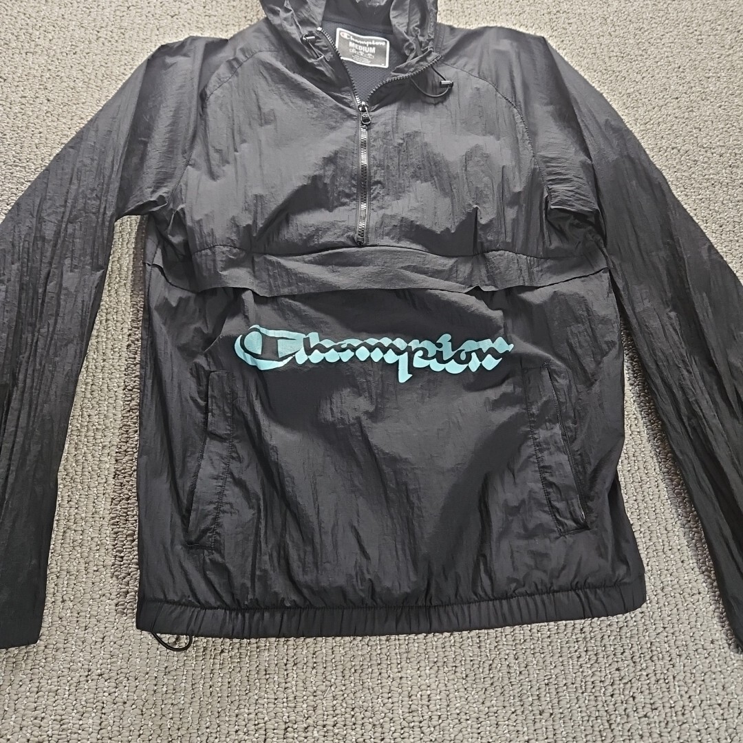 как выглядит Champion Windbreaker Womens Medium 1/4 Zip Pullover Hooded Jacket Stowable фото