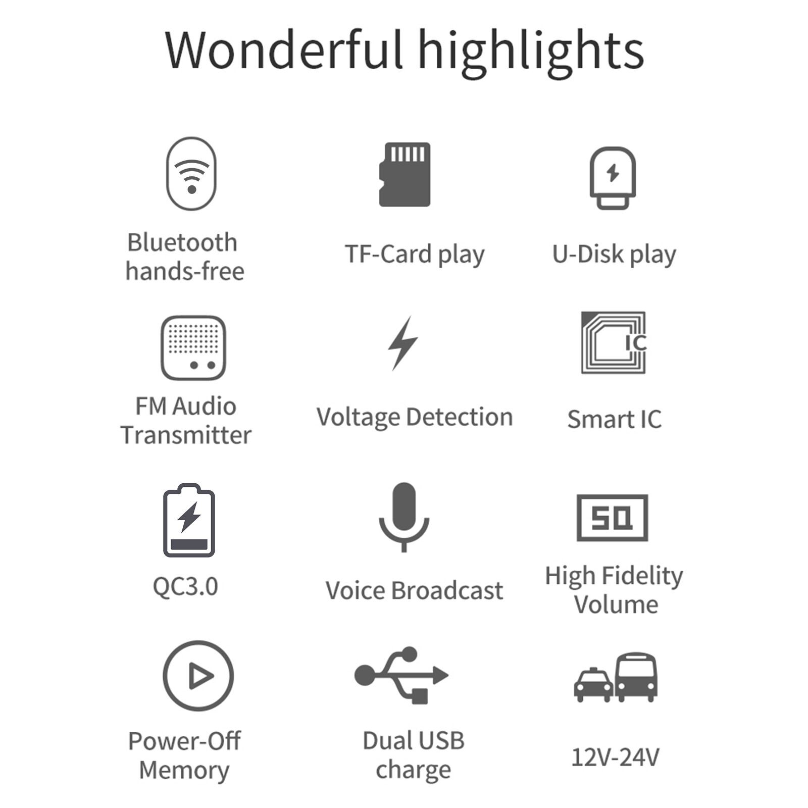 Function: Auto-Scan, Handsfree Call, Microphone, MP3 Player