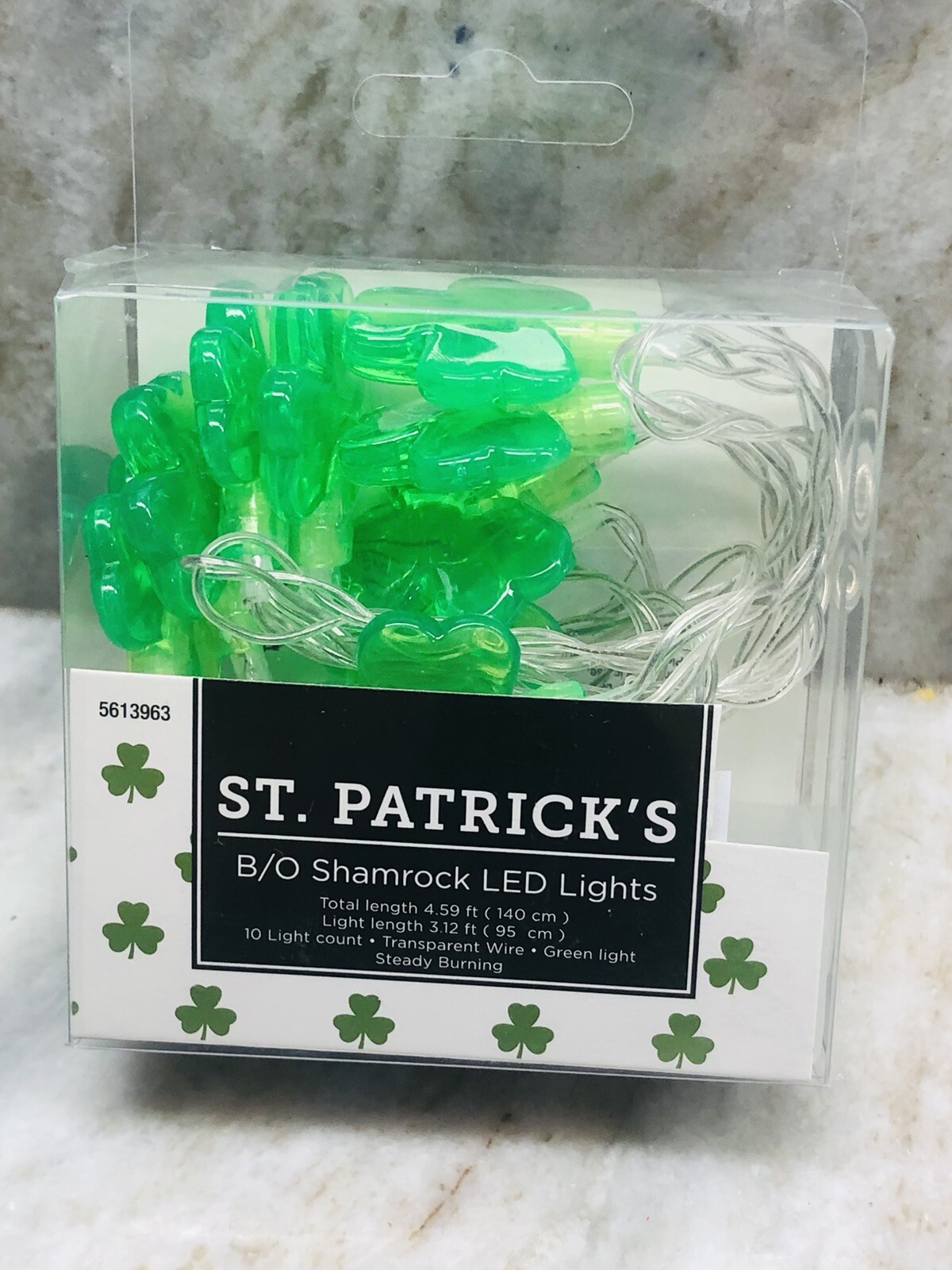 St. Patrick s Shamrock Battery Operated LED Light Strings 10 Lights 4.5 Ft