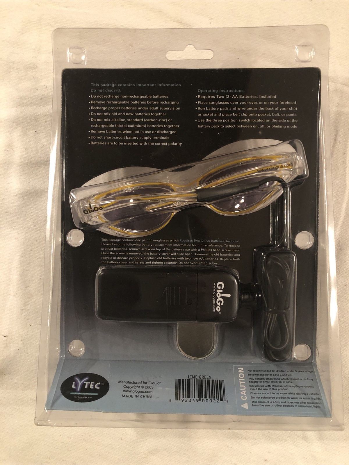 Vintage GLOGo Glowtronix Lime Green NEW Sunglasses