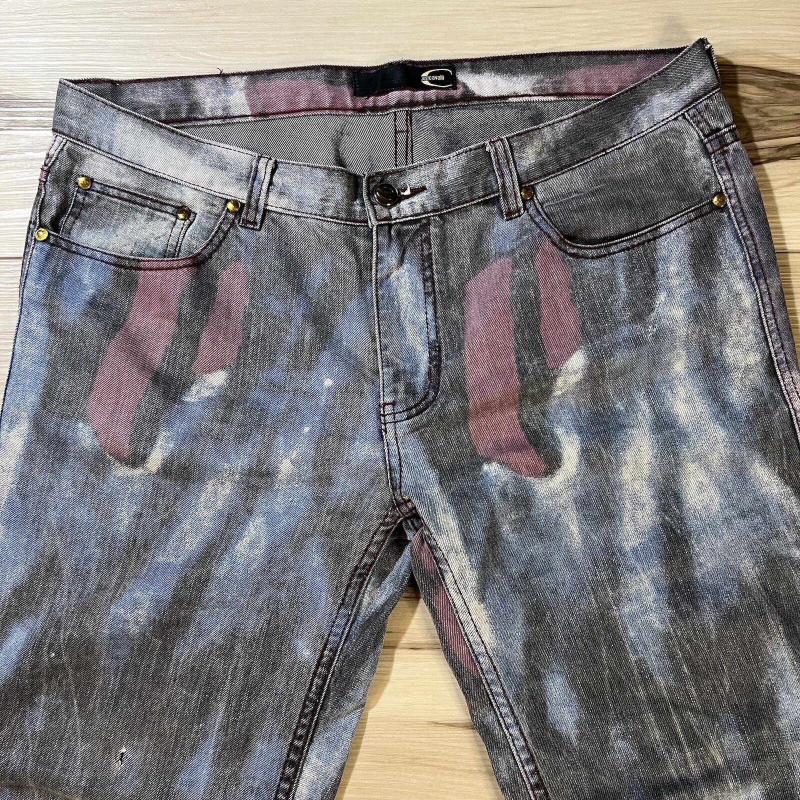 как выглядит Just Cavalli Vintage Y2k Jeans Gray Paint Splatter/ Tie Dye Made in Italy 36 фото