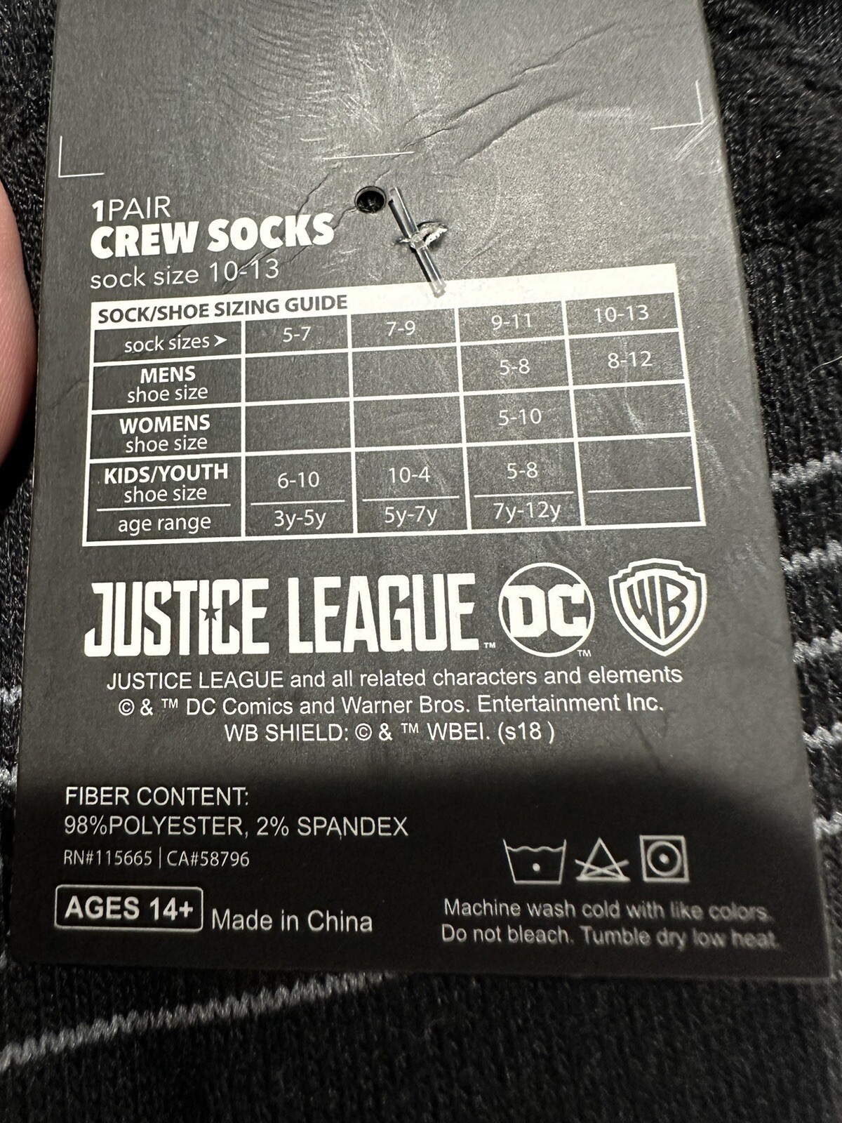 Justice League Crew Socks Size 10-13 Running Socks With Wings