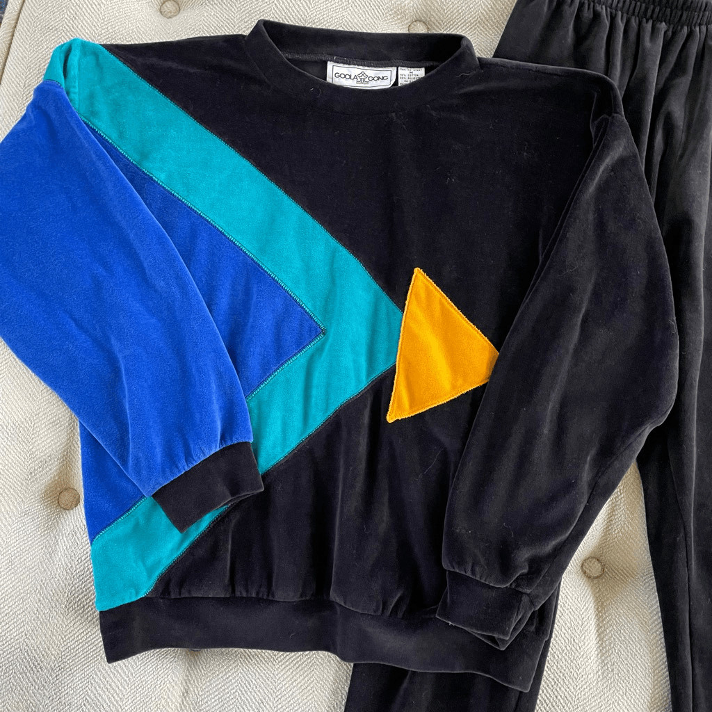 Vintage 80s Goolagong Velour Geometric Shape Track Suit Sweatshirt Pants S M