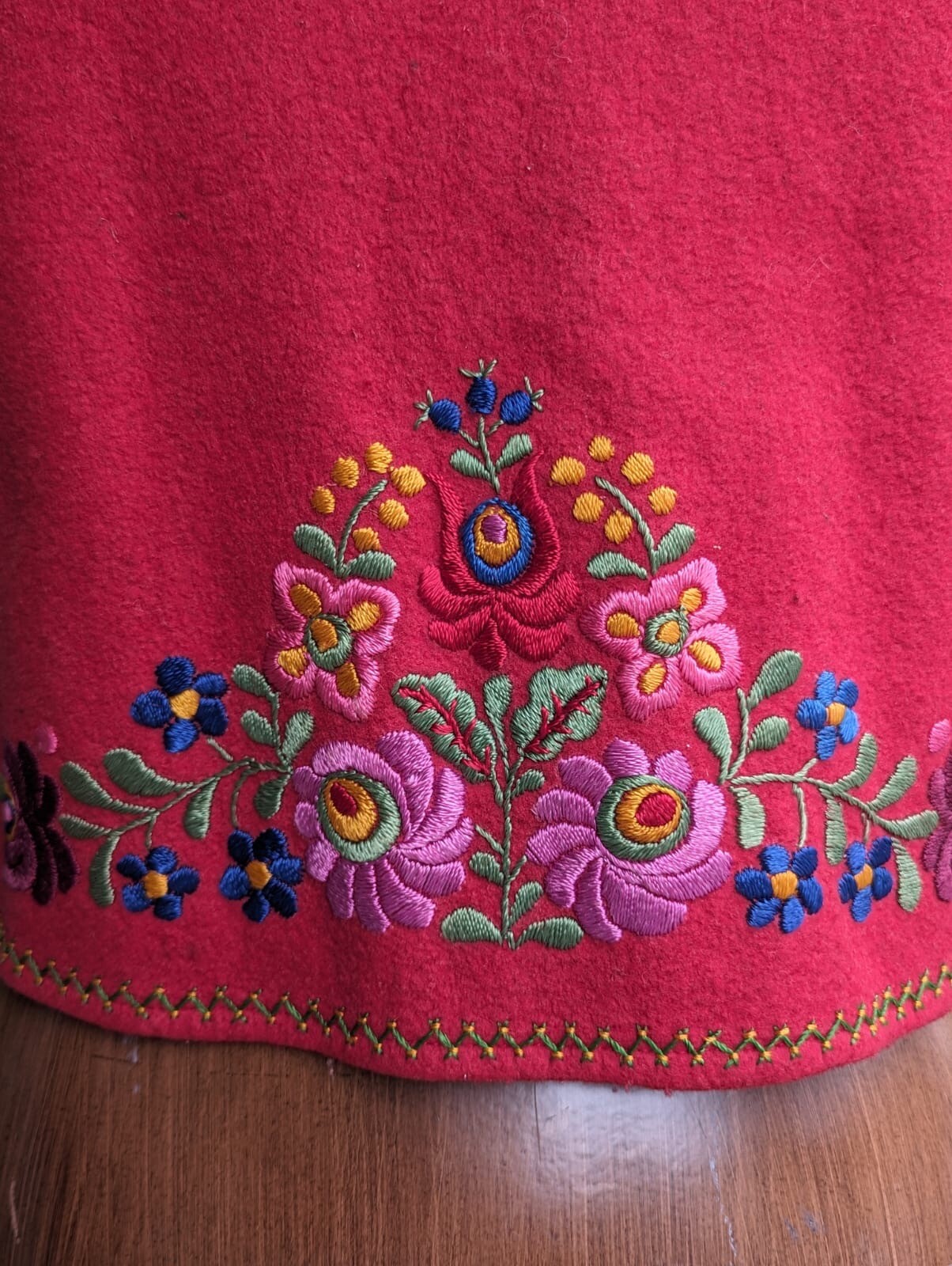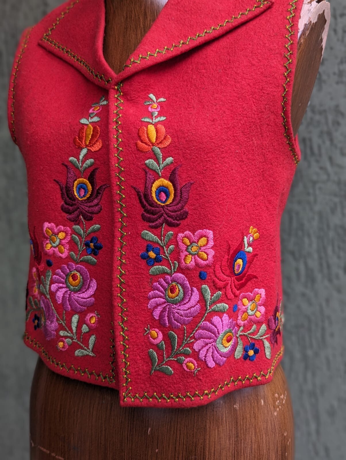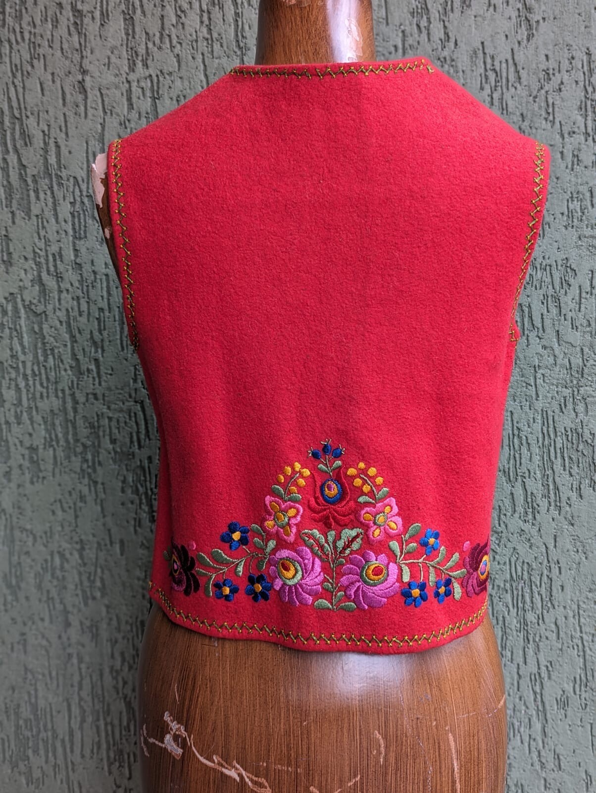 как выглядит HUNGARIAN 1920 S THICK RED FELT VEST W/ RICH FLORAL HAND EMBROIDERY фото