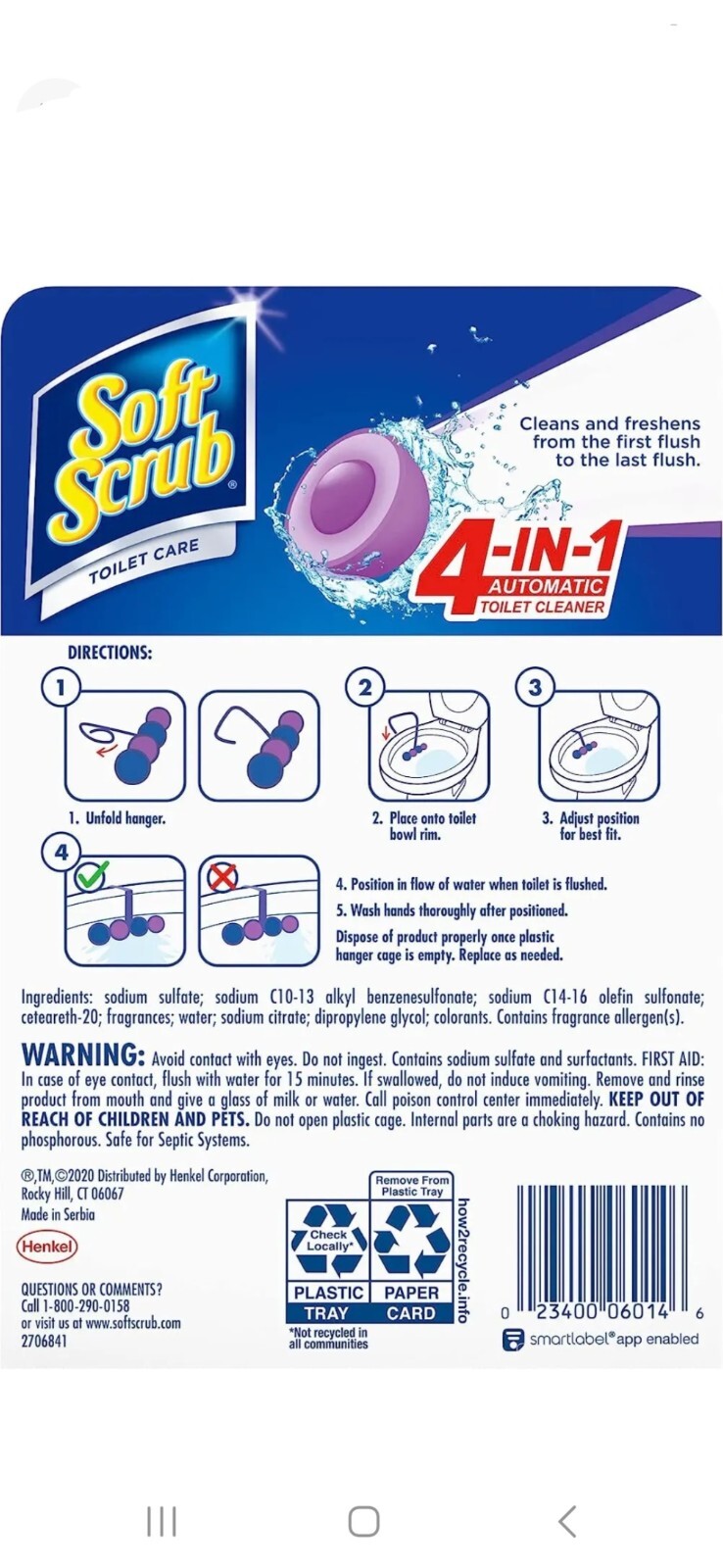 1 Case of 6 count ea. soft scrub toilet cleaner 4 in 1,for toilet bowl cleaning
