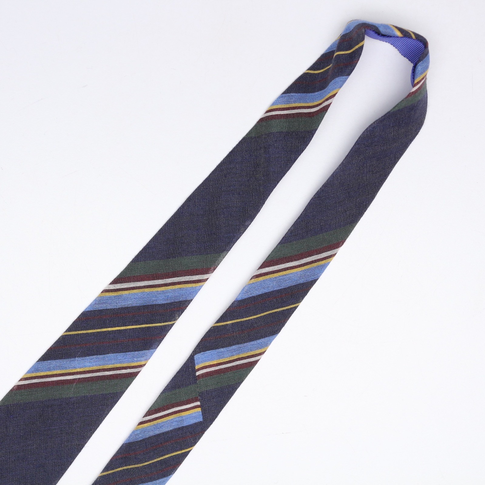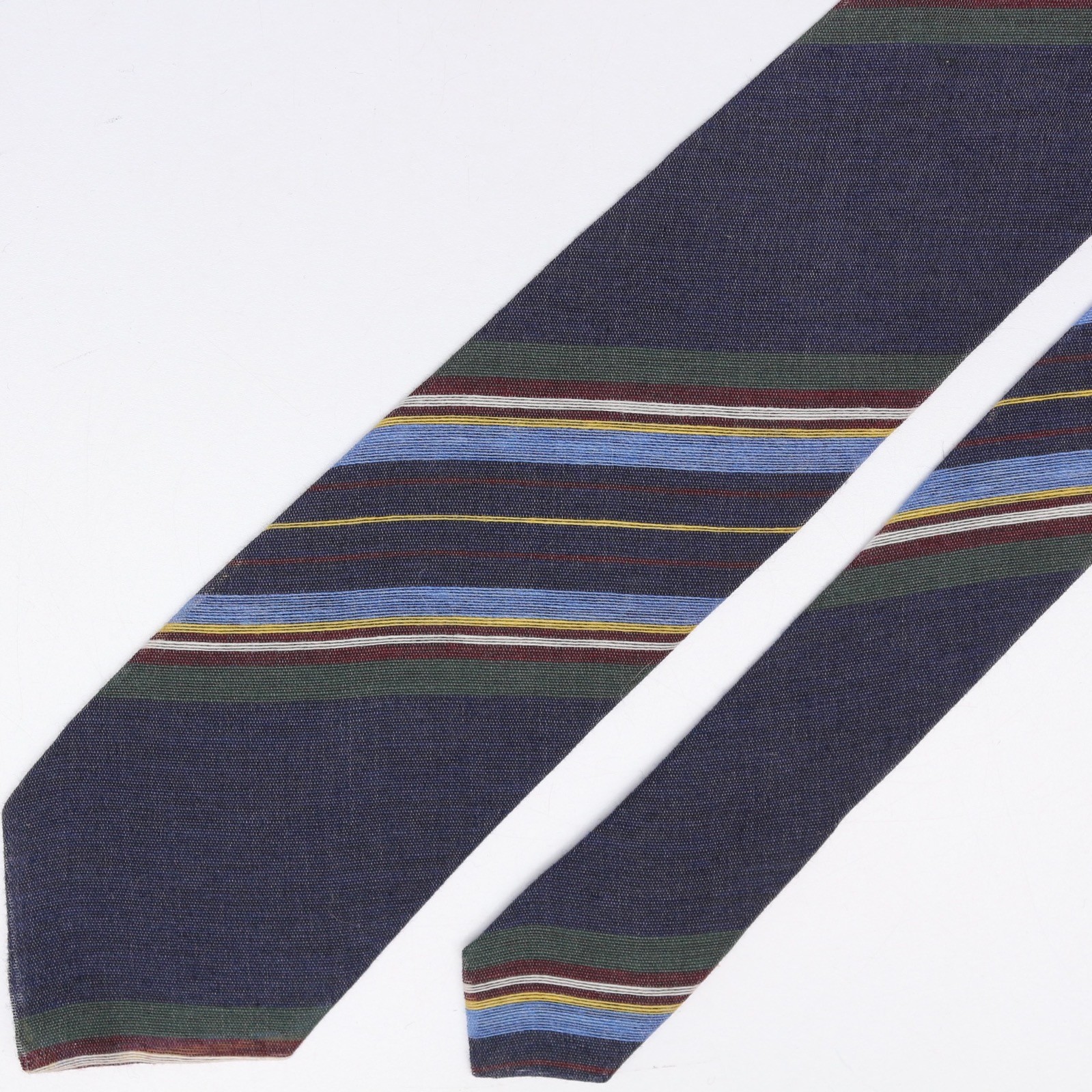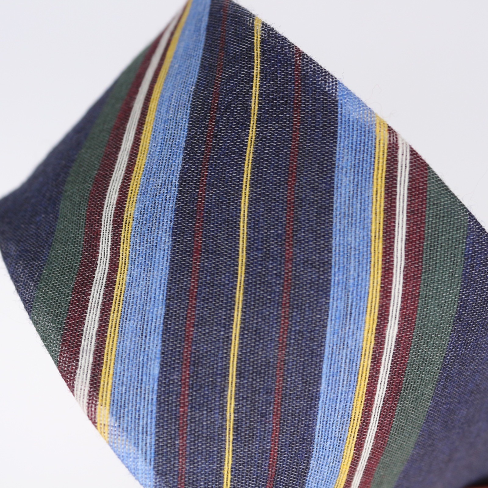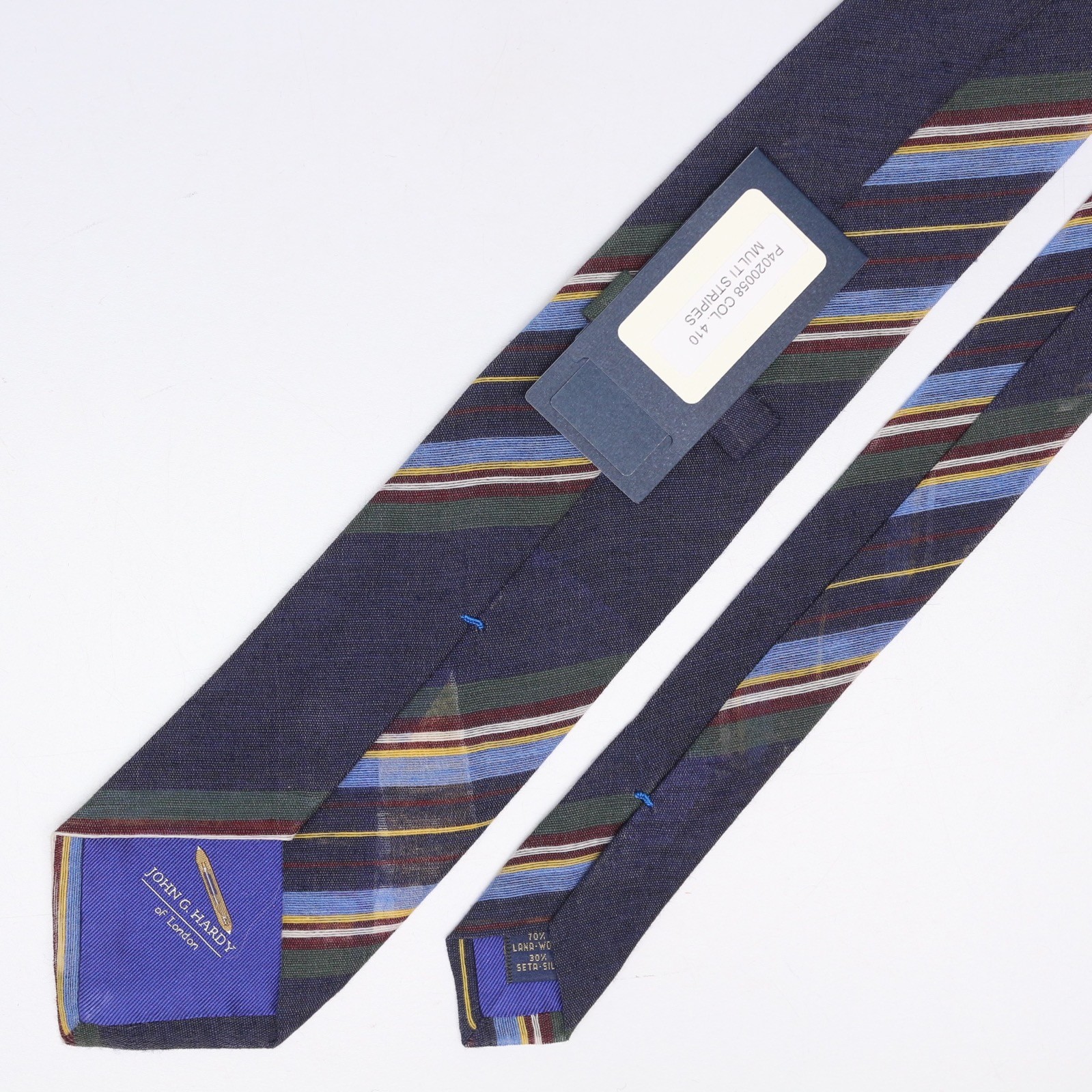 John G Hardy Mens Wool Silk Necktie Blue Green Red Stripe Weave Lightweight Tie