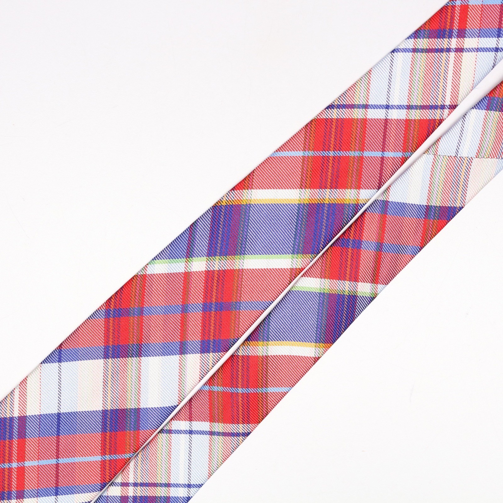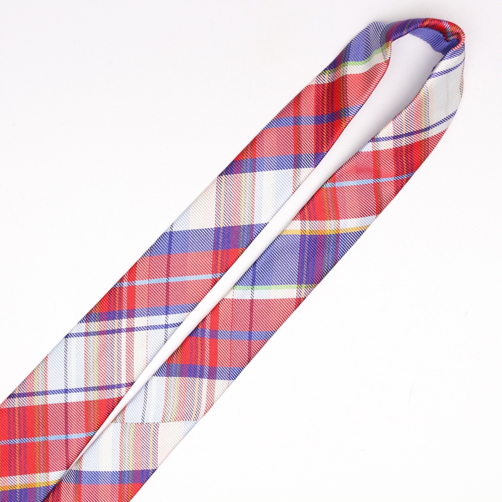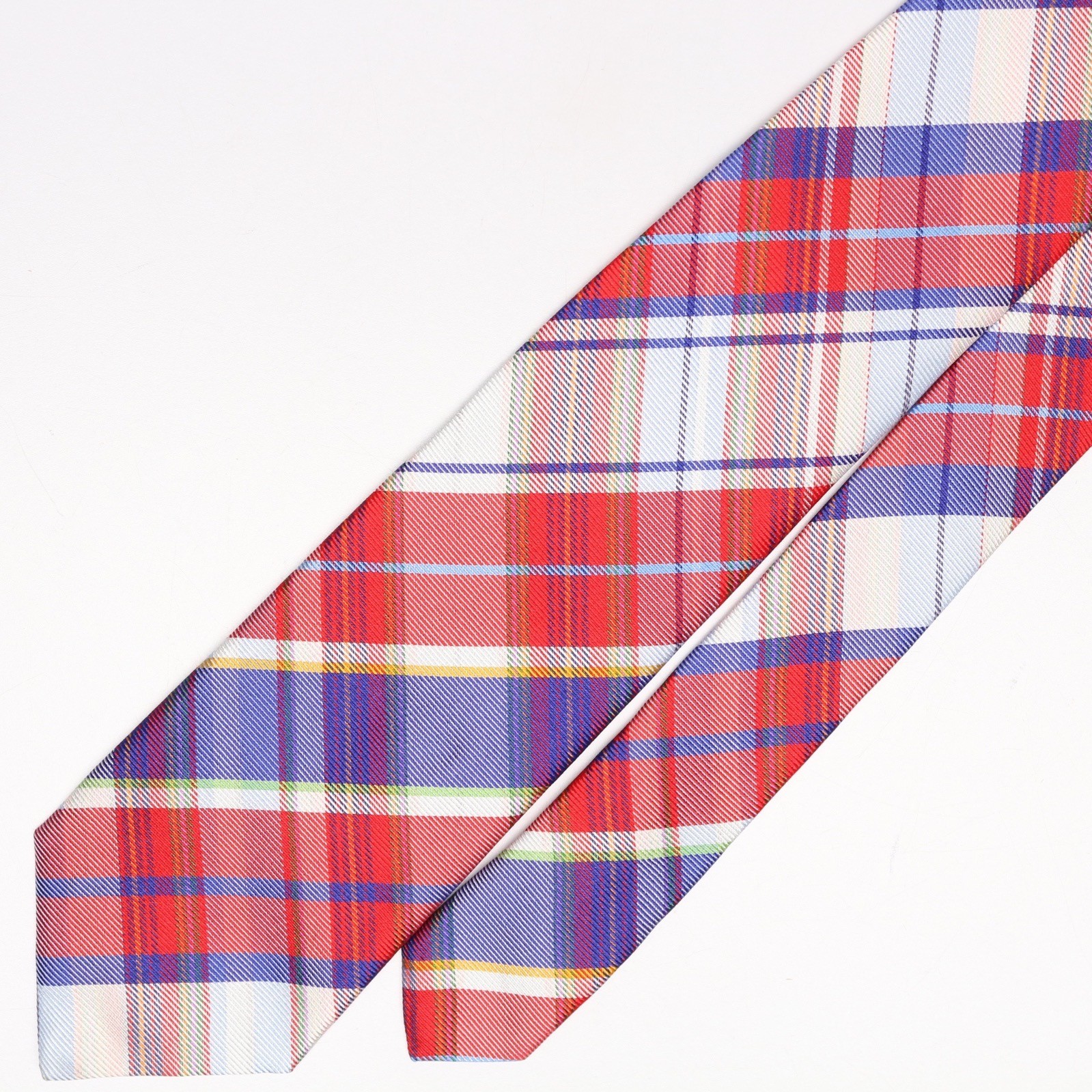 как выглядит John G Hardy Mens Silk Necktie Red White Blue Tartan Plaid Weave Woven Tie Italy фото