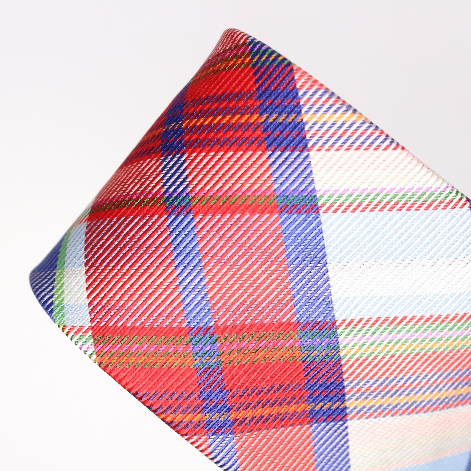 John G Hardy Mens Silk Necktie Red White Blue Tartan Plaid Weave Woven Tie Italy