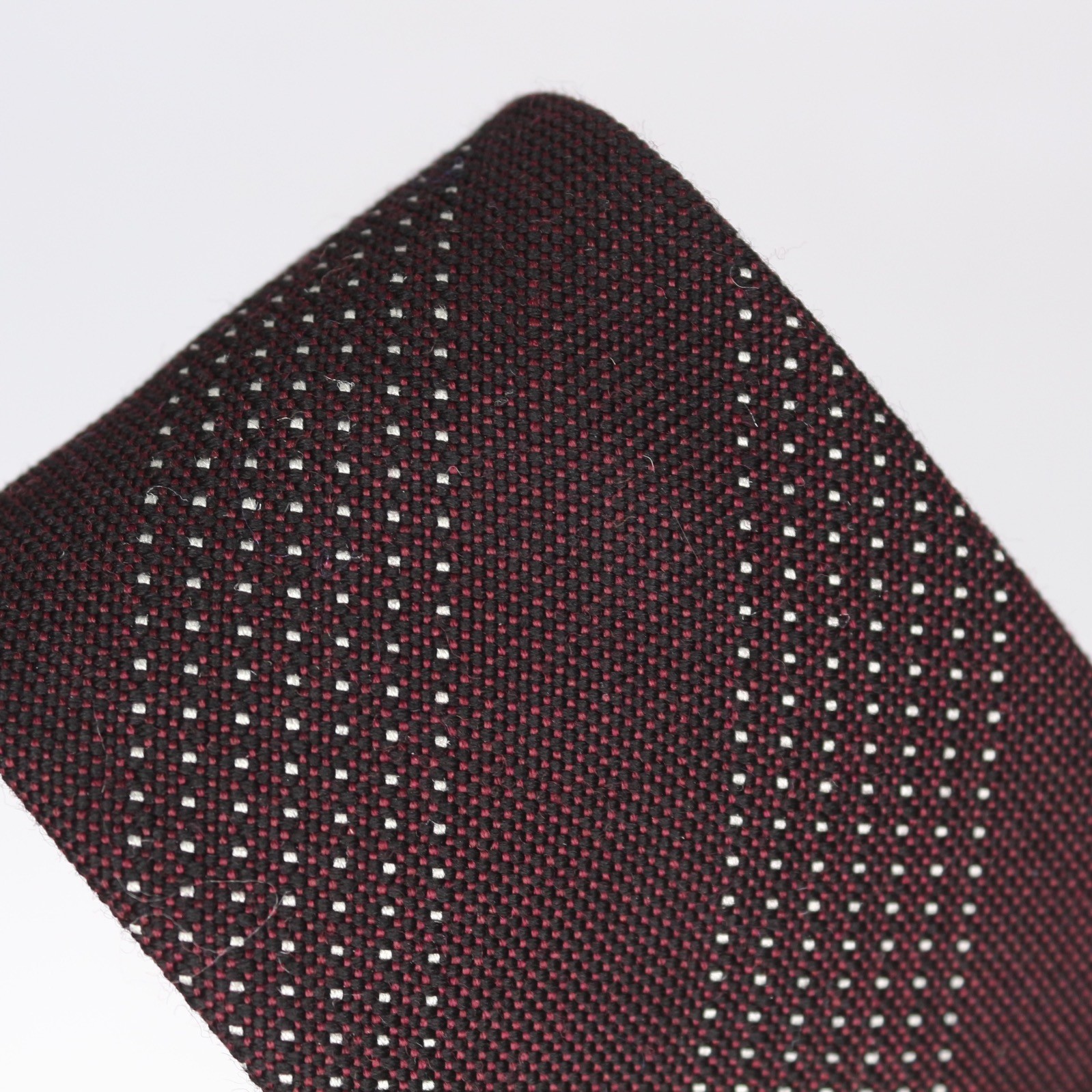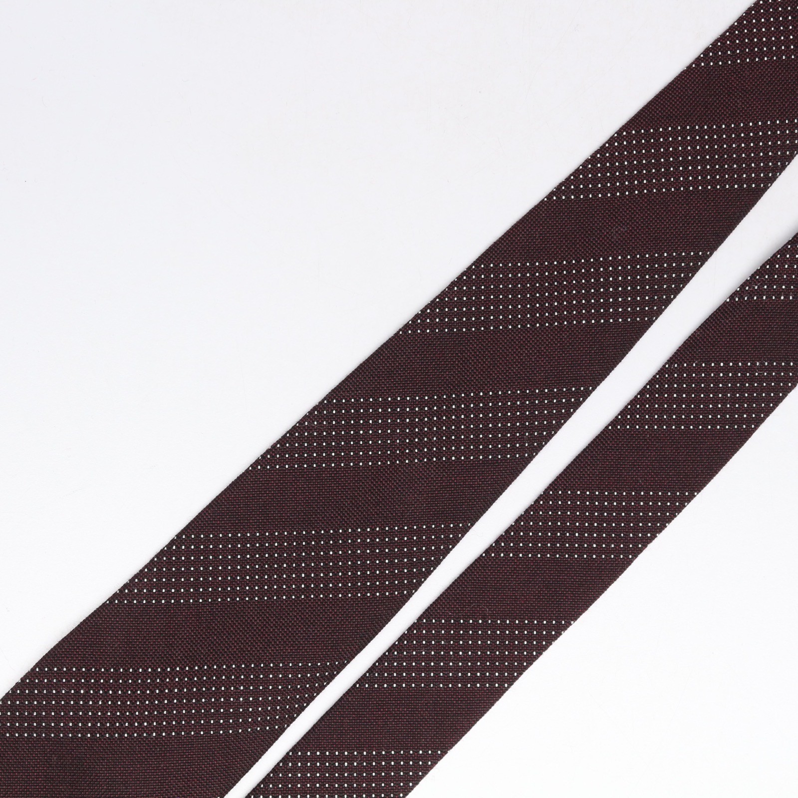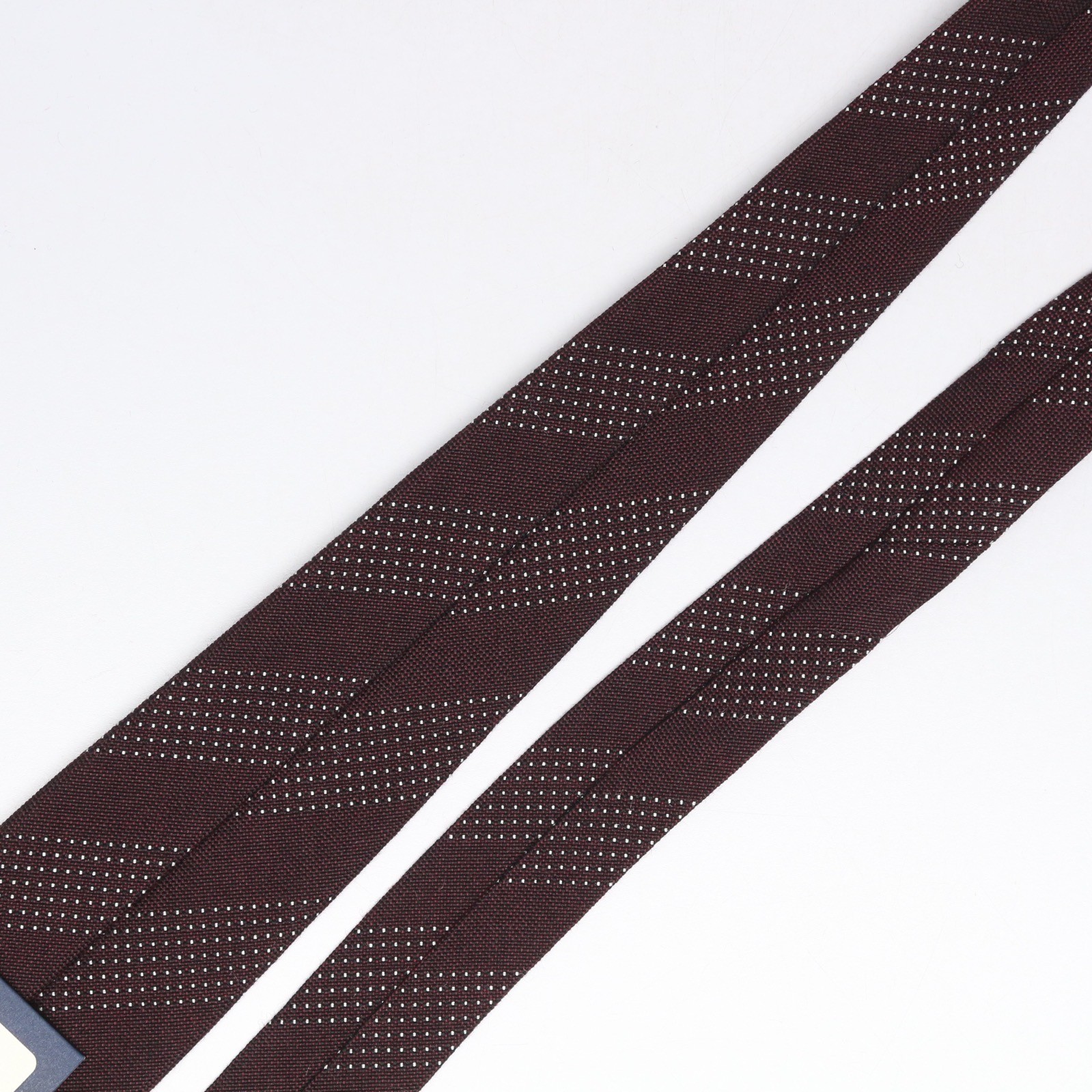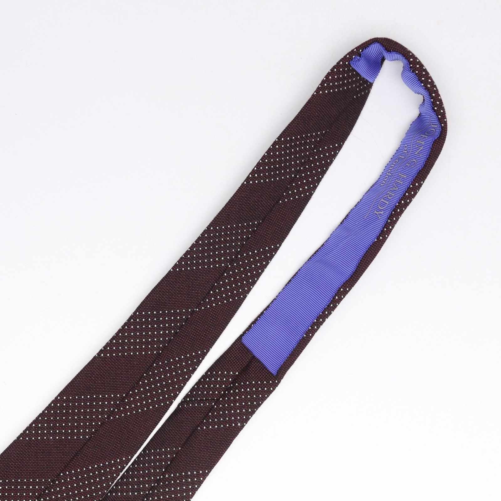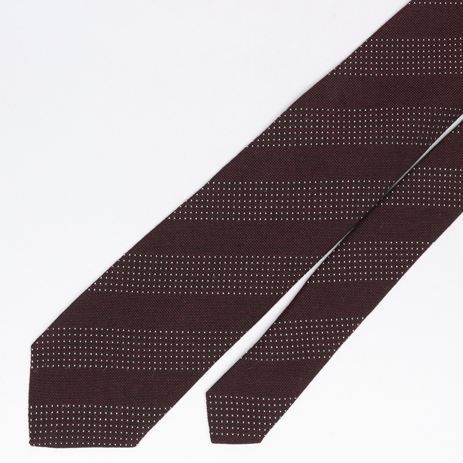 John G Hardy Mens Wool Silk Necktie Burgundy White Dotted Stripe Weave Woven Tie