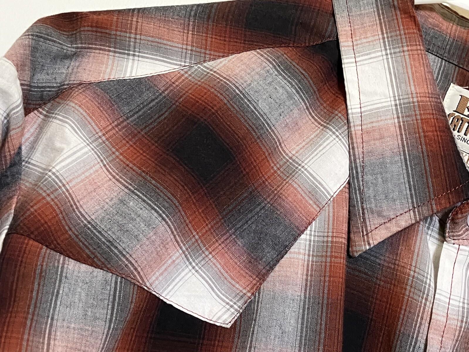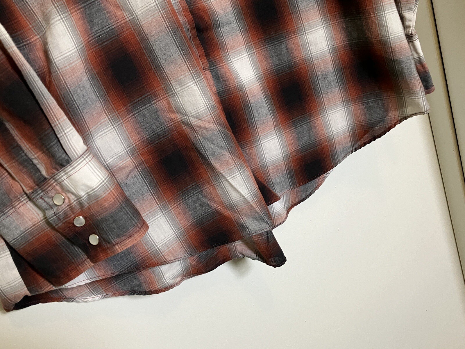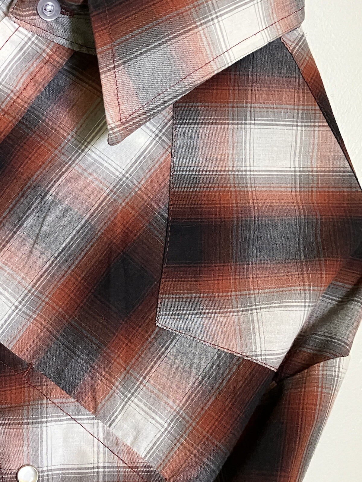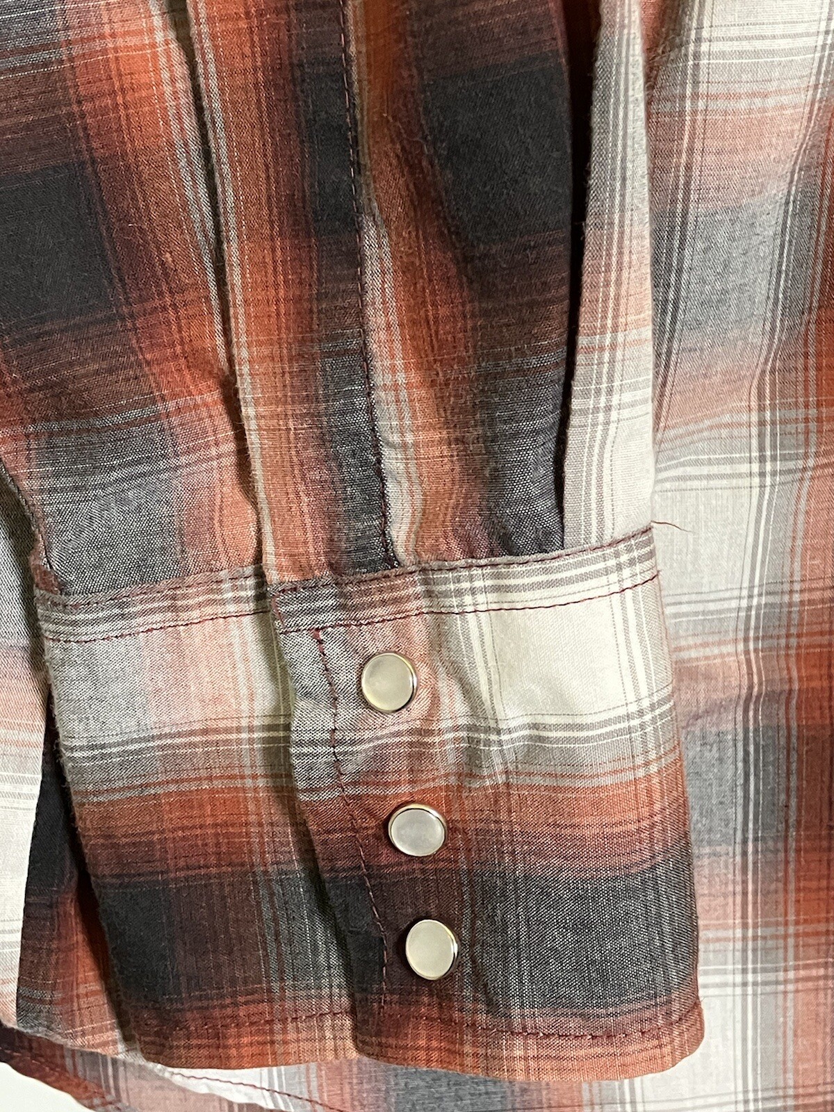 как выглядит VTG Ely Cattleman Sz XL Rust Black Gray White PLAID Western Pearl Snap SHIRT LS фото