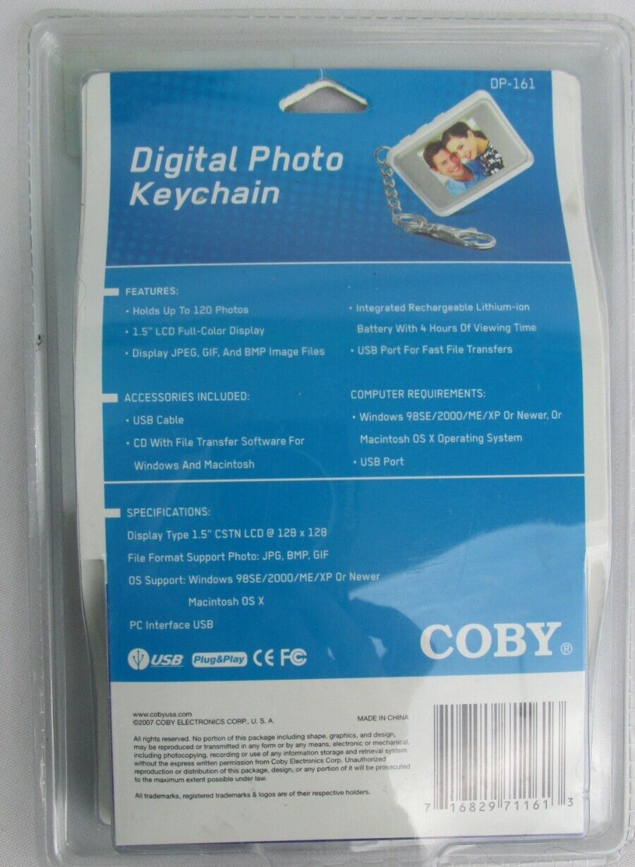 New Coby Digital Photo Keychain 120 Photos 1.5 LCD Color Display Rechargeable