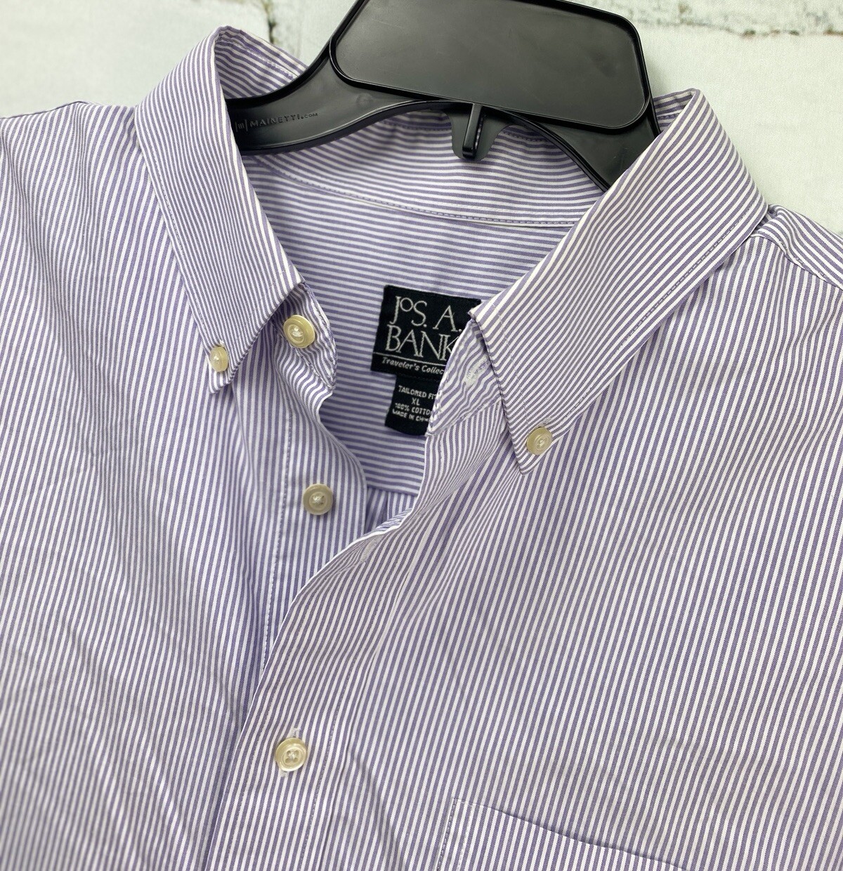 как выглядит Jos A Bank Traveler Collection Tailored Fit Mens XL Dress Shirt Purple Stripe фото