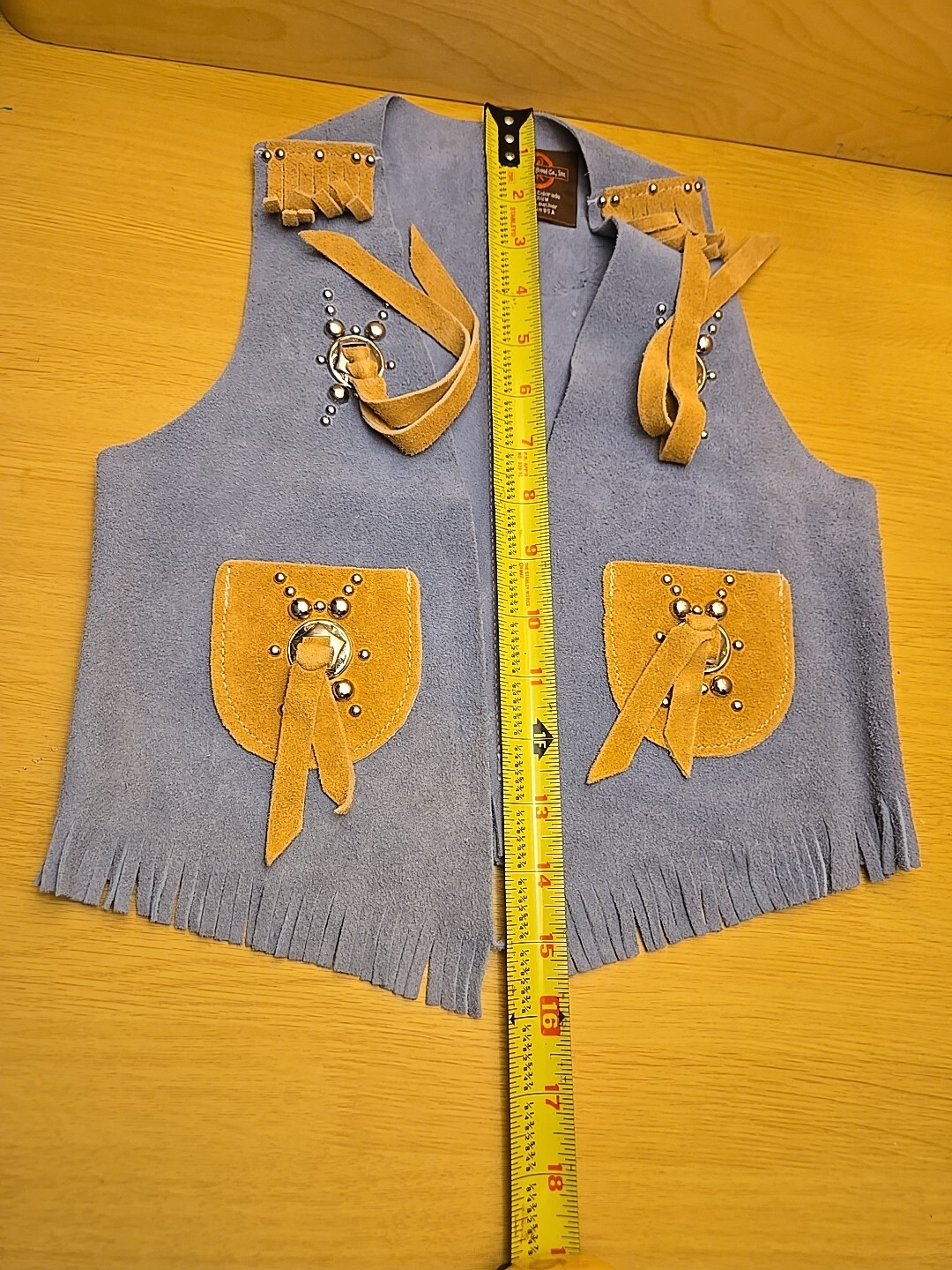 как выглядит John R Craighead Co. Vintage Light Blue Suede Fringed Western Vest Childs M фото