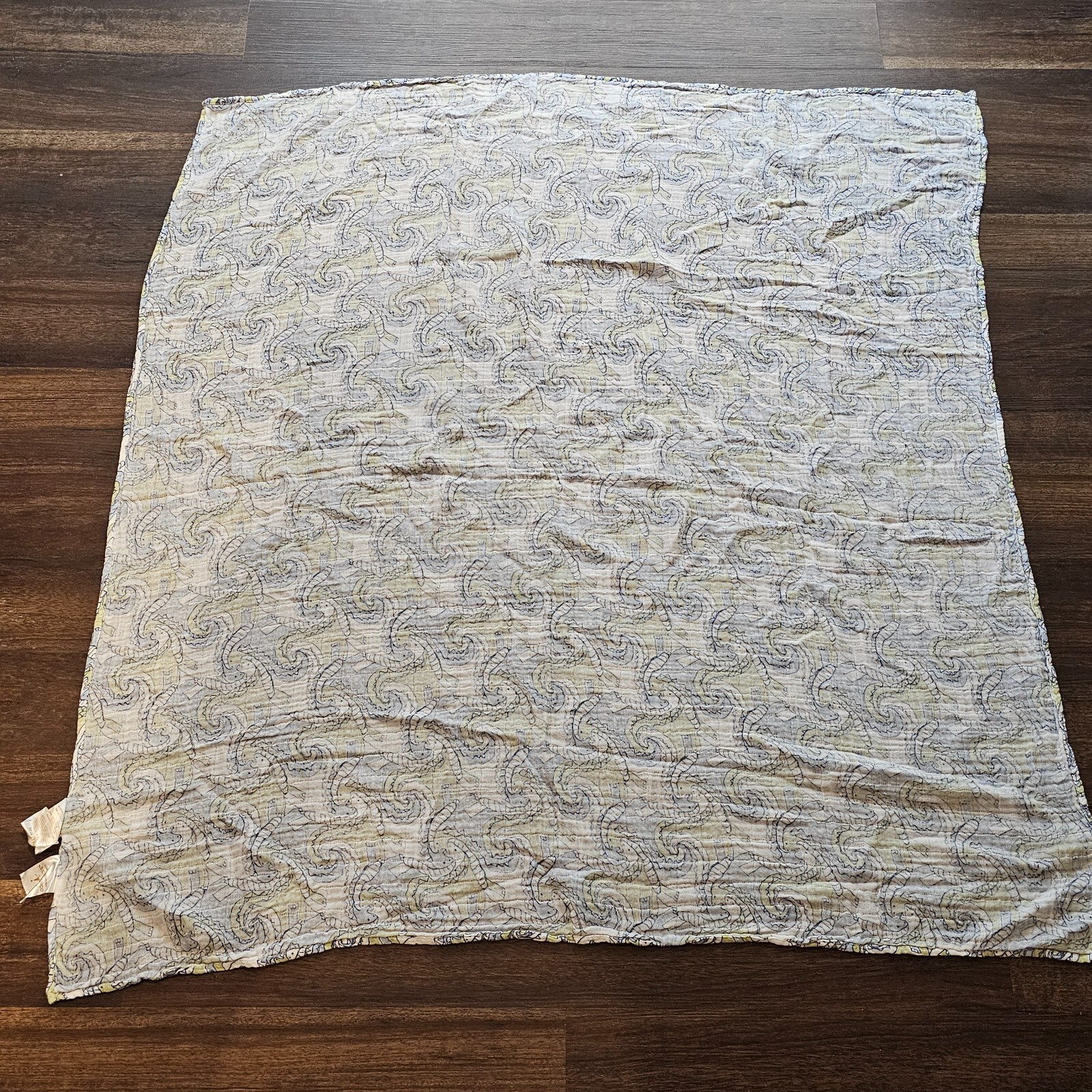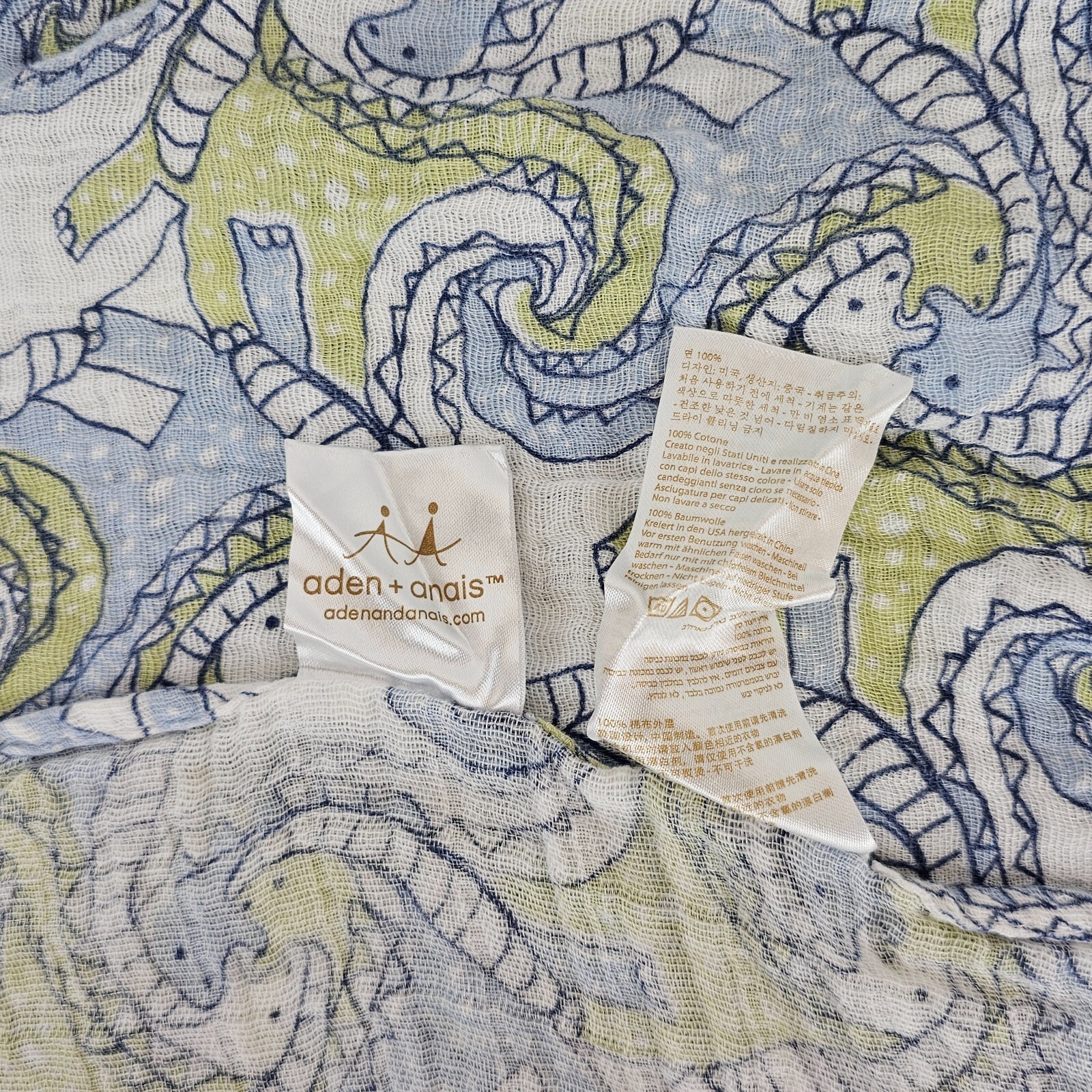 Aden Anais Cotton Muslin Baby Blanket White Blue Green Paisley Swirl Dinosaur