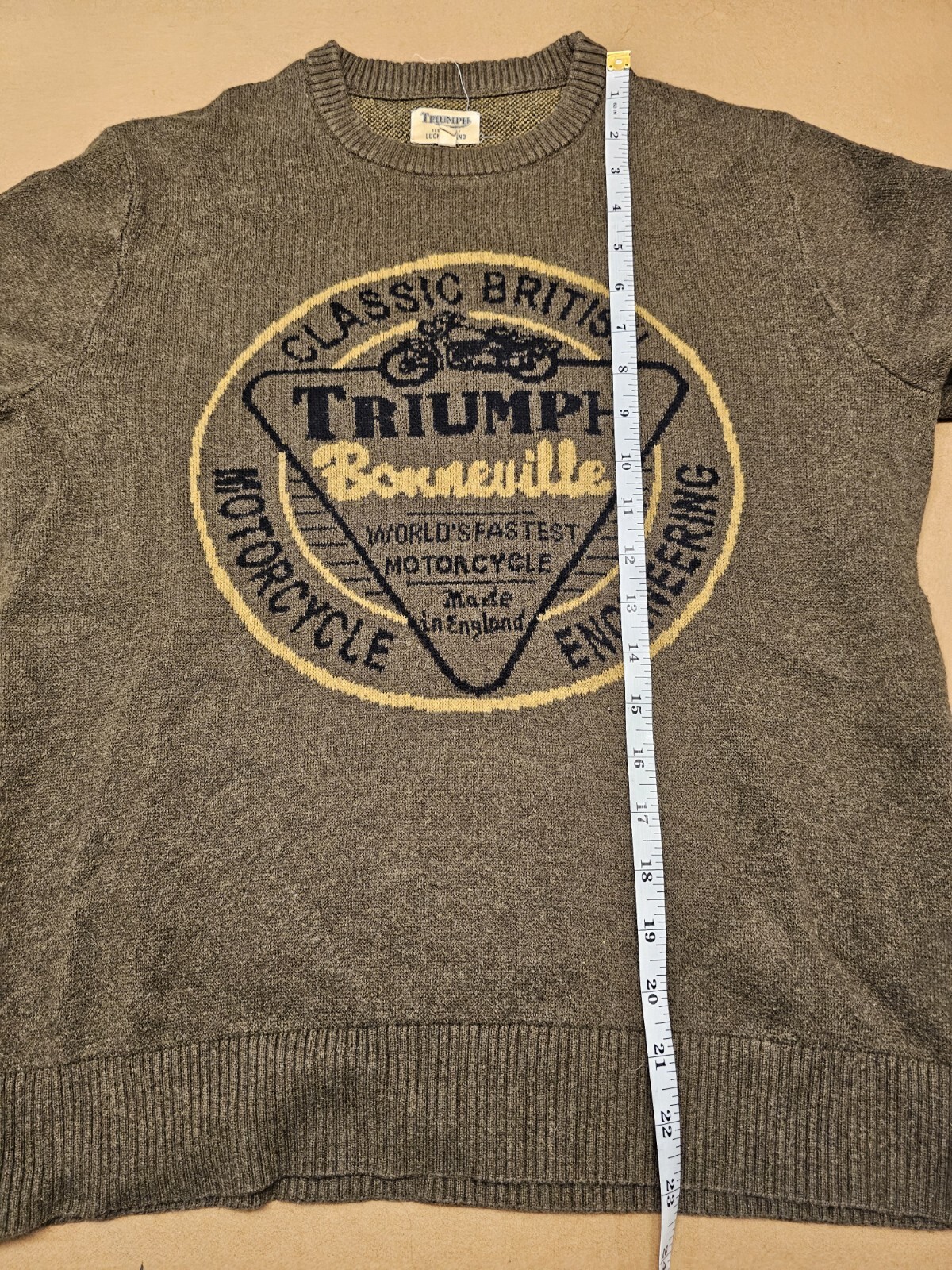 как выглядит Triumph Motorcycles Lucky Brand Olive Long Sleeve Sweater Mens Bonneville фото