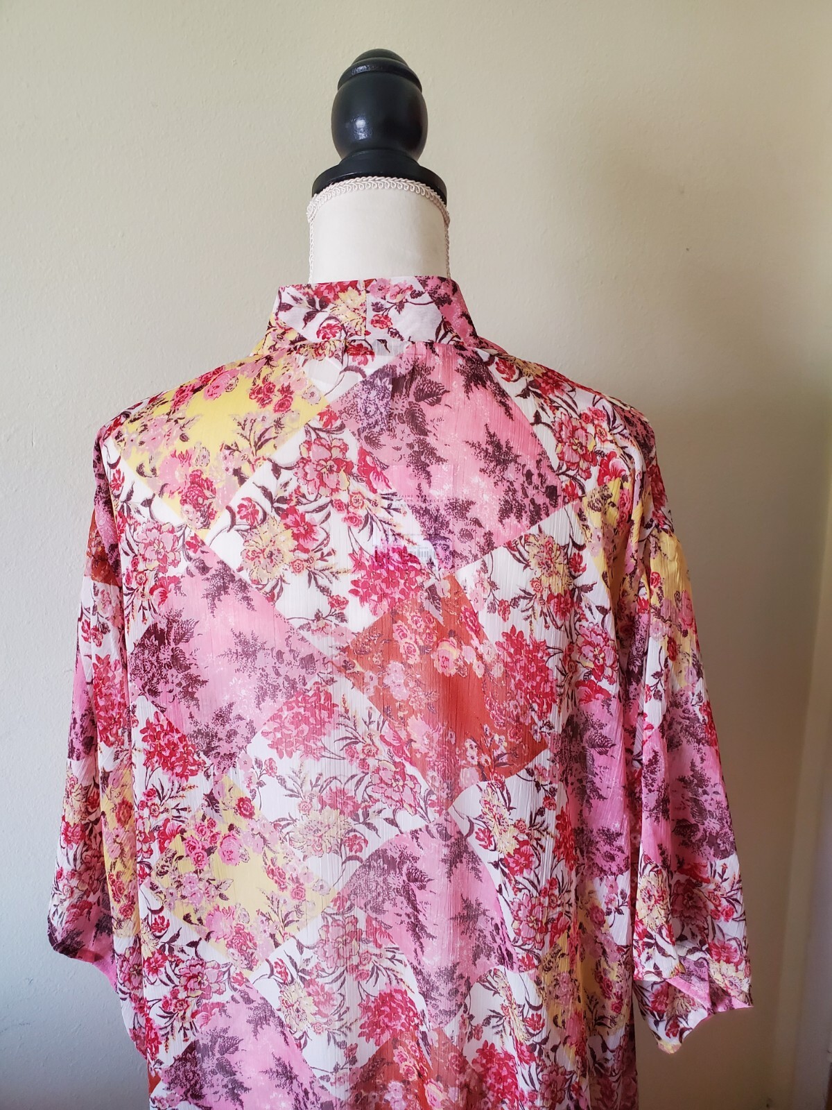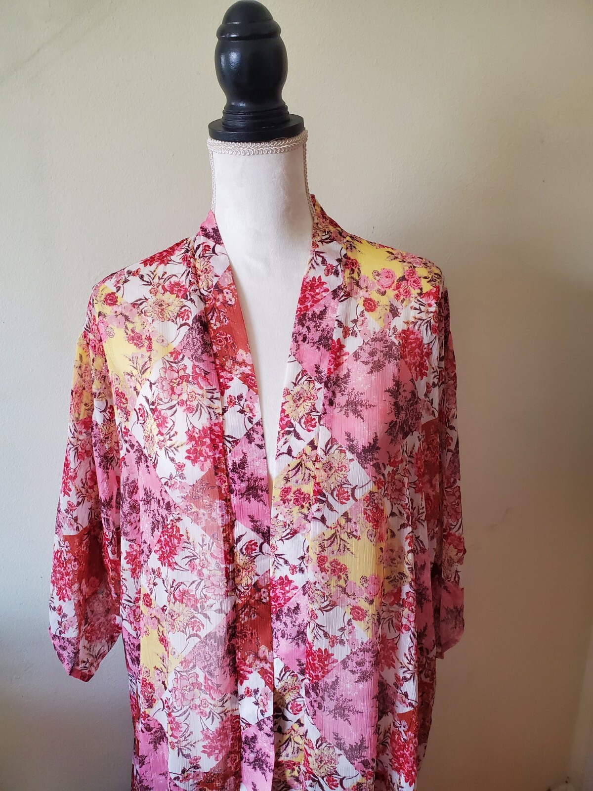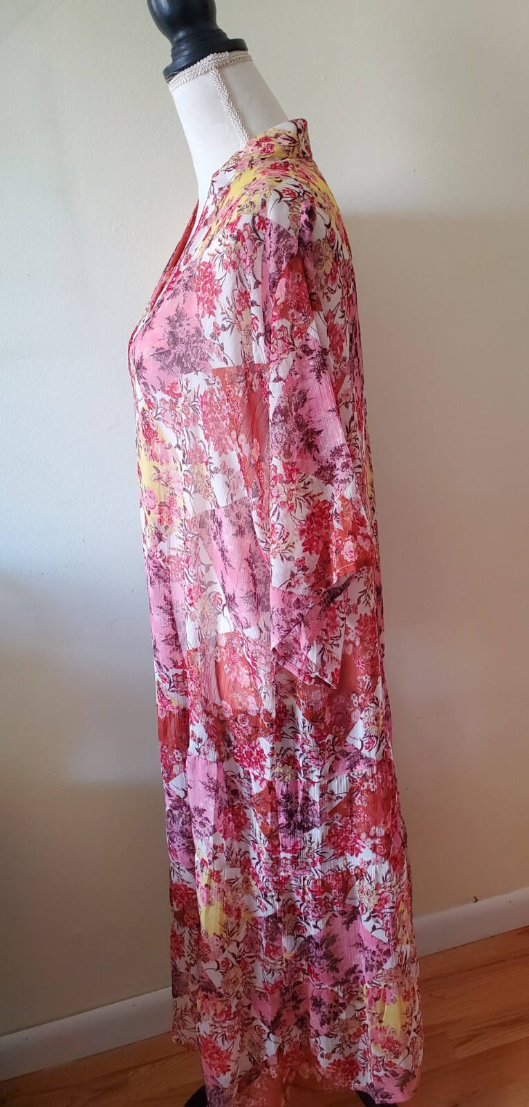 как выглядит Lauren Conrad Womens One-size Kimono Duster Open Front Patchwork Floral Multi фото