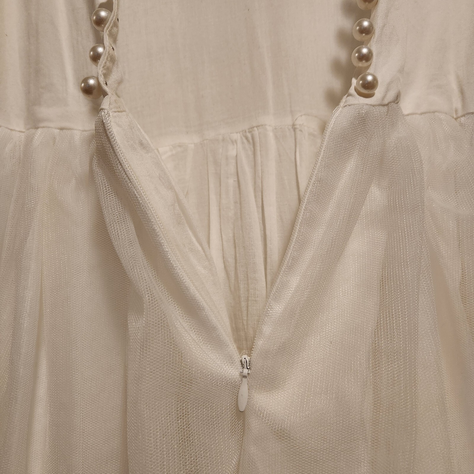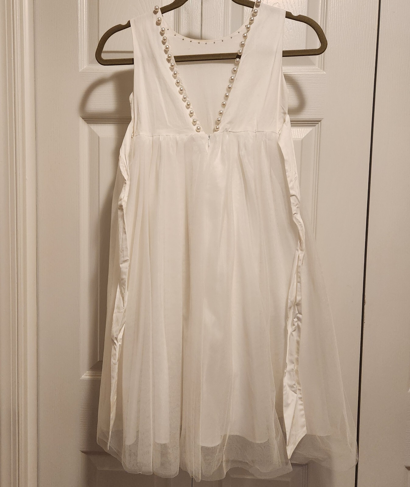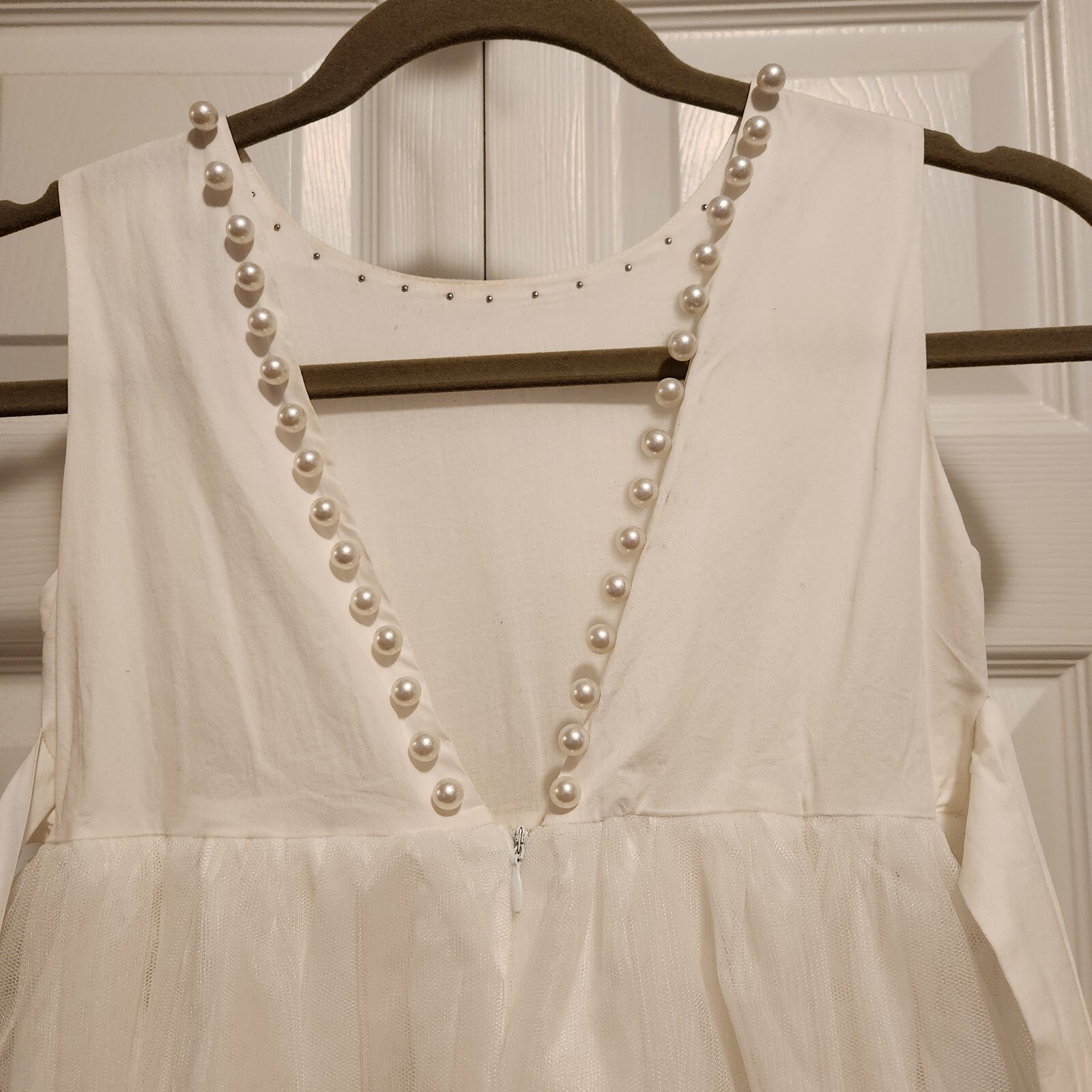 как выглядит ONLY LITTLE ONCE Flower Girl sz 8 Midi Dress Ivory Tulle Skirt Pearl Decor VBack фото