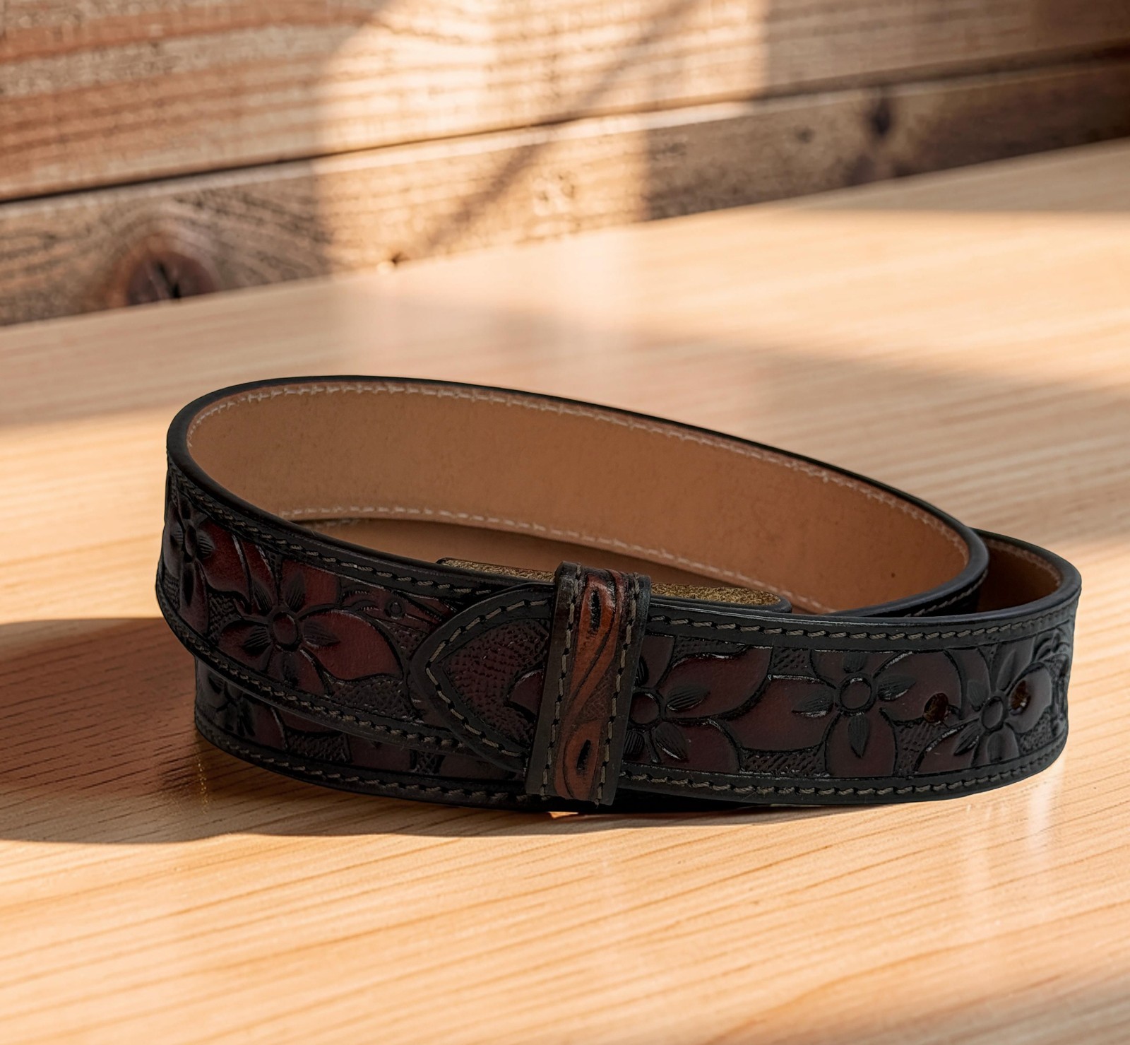 Western Floral Engraved Tooled Genuine Full Grain Leather Belt Strap 1-1/2 Wide