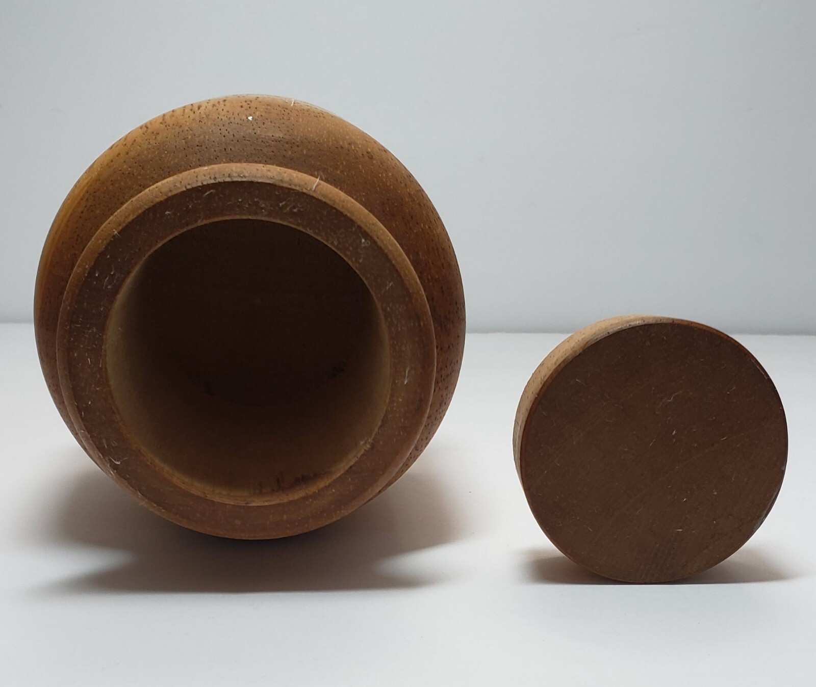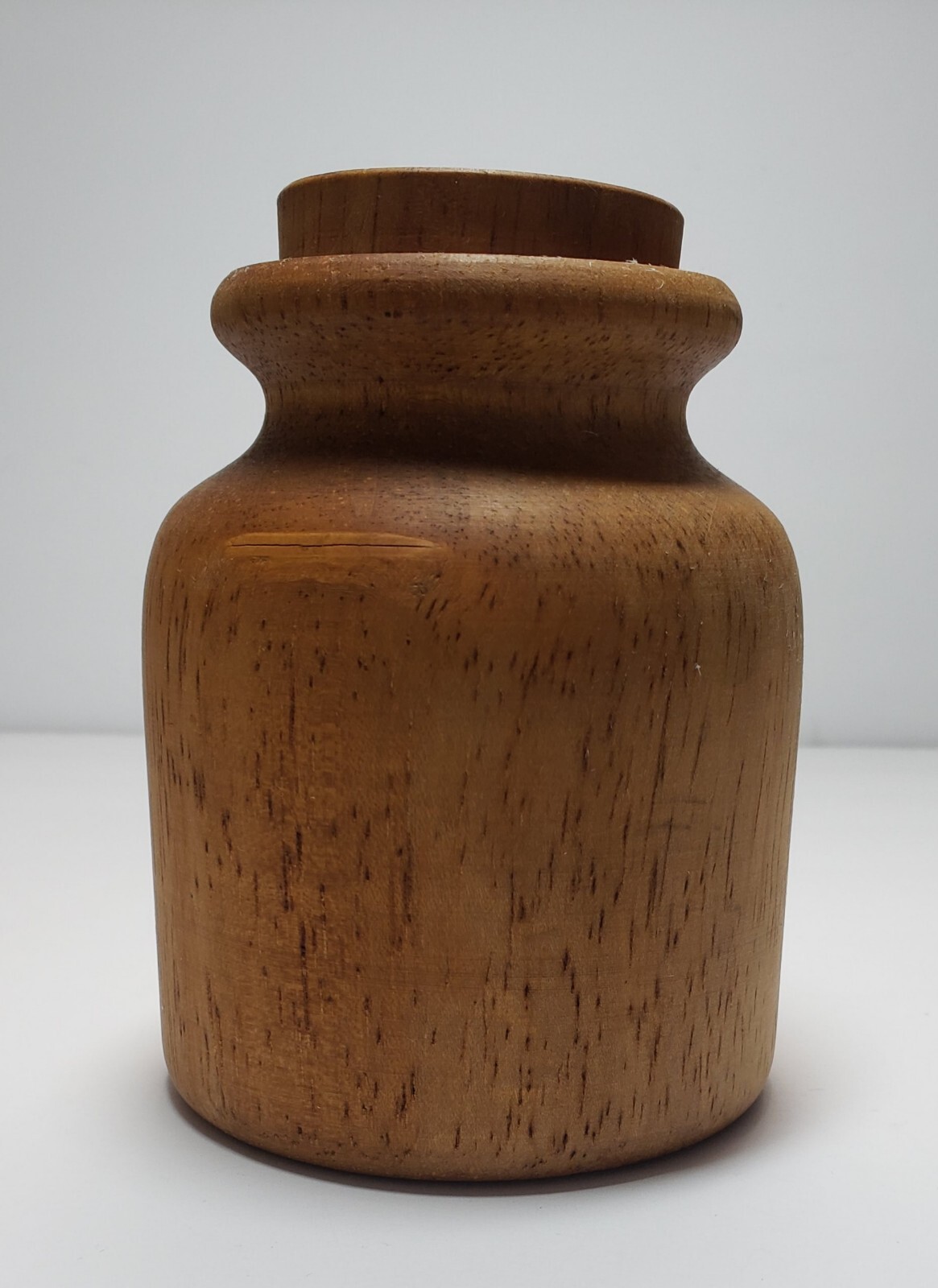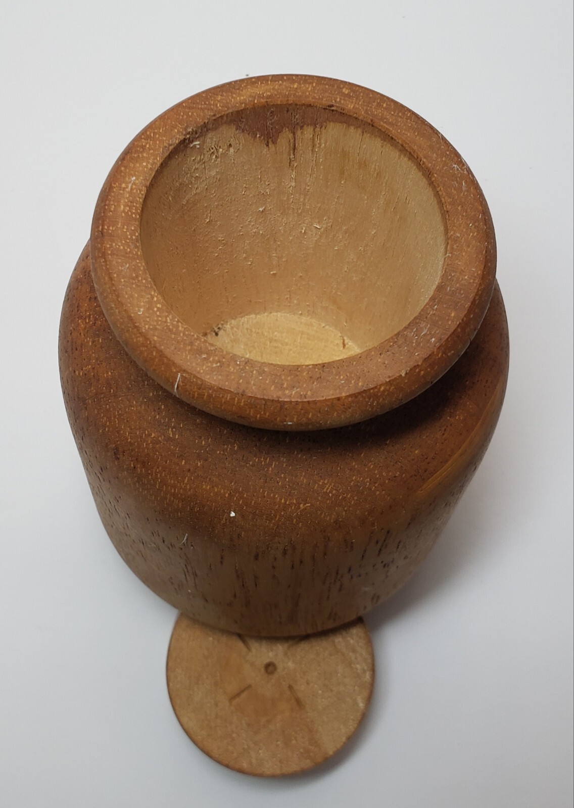 Wood Jug Jar Trinket Box with Wood Stopper Hand Carved 4 1/2 inches Vintage