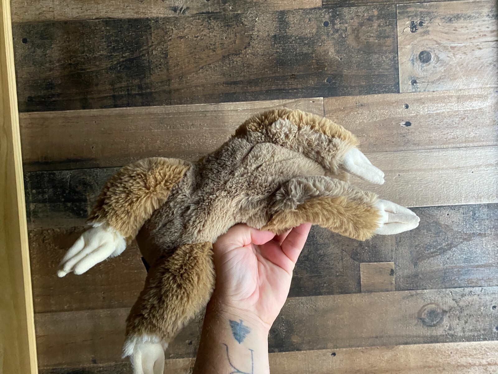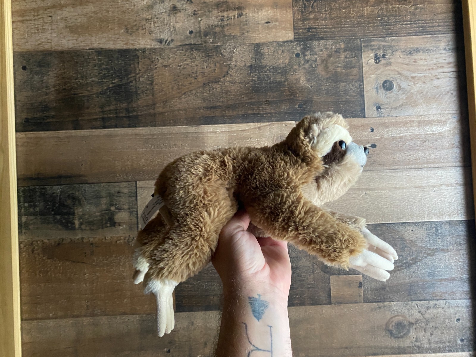 как выглядит FAO Schwarz Plush Sloth 14" Lying Stuffed Soft Cuddly Toy Beans Metal Button фото