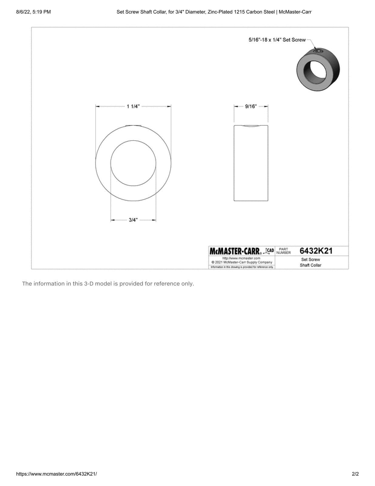 • Set Screw Shaft Collar for 3/4" Diameter, Zinc-Plated 1215 Carbon Steel 50pack