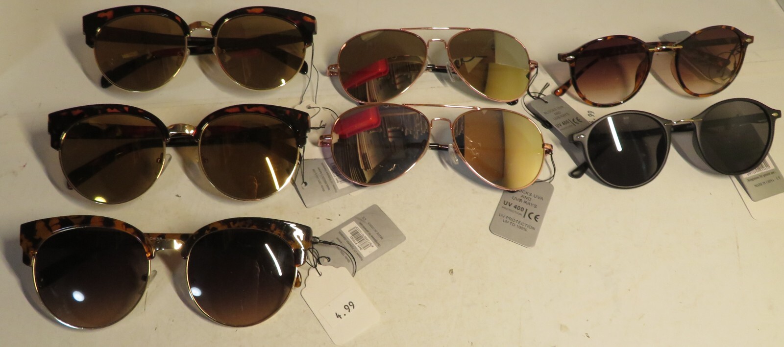 Sunglasses 7 Pc Lot Tortoise Aviator Frames Men's Women's New UV400 w/ Tags Set