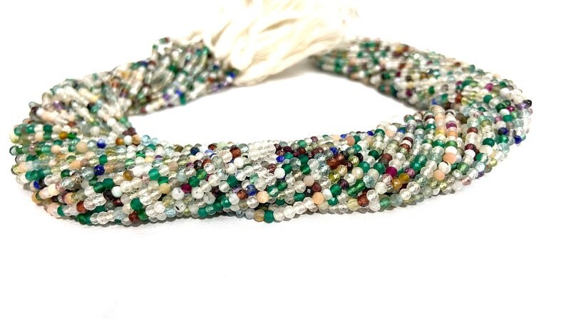 как выглядит Nature Multi Mix Micro Faceted Round Gemstone Loose Beads Strand 12