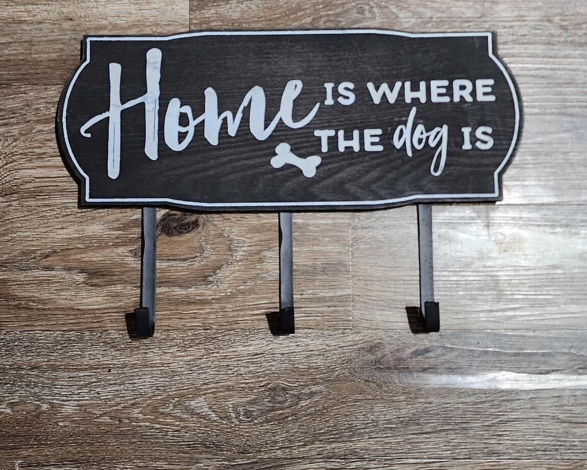 Home Dog Sign 15 With 3 Hook Hooks For Leash Collar Towel Hanging Rack