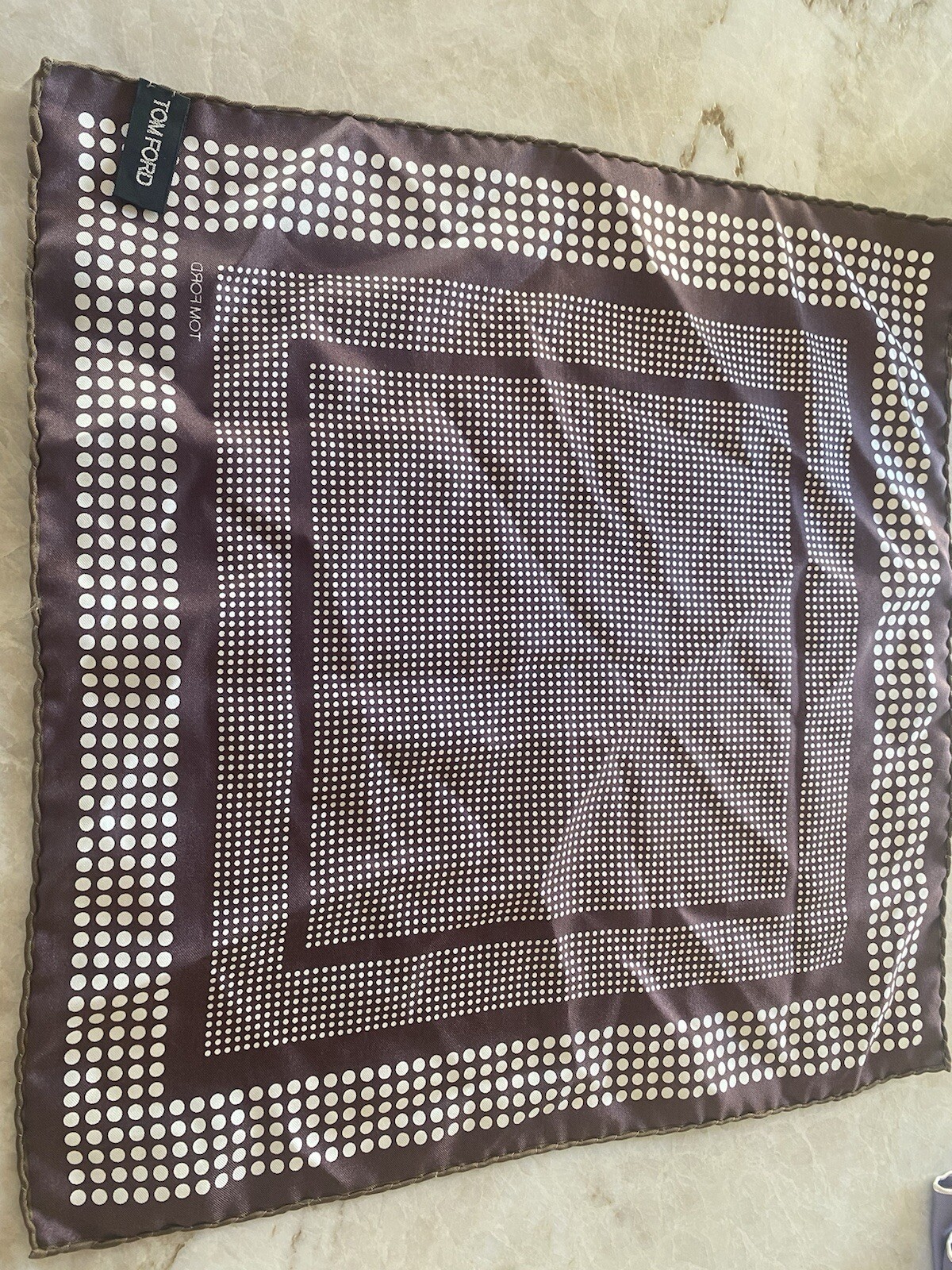 TOM FORD BROWN/WHITE PATTERN POCKET SQUARE SILK
