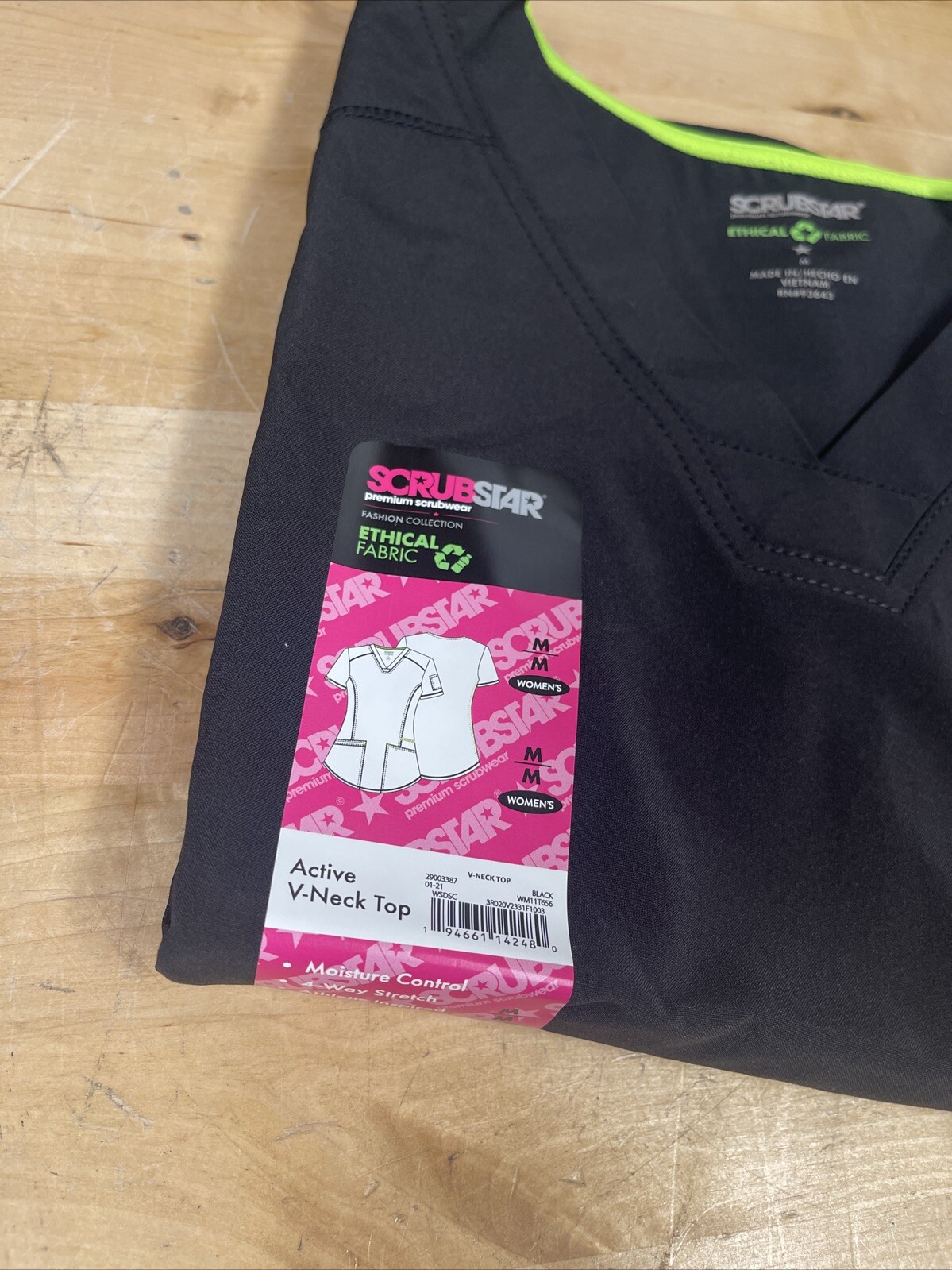 Scrubstar Women s Black Stretch Moisture Control Scrub Top Shirt Size M New