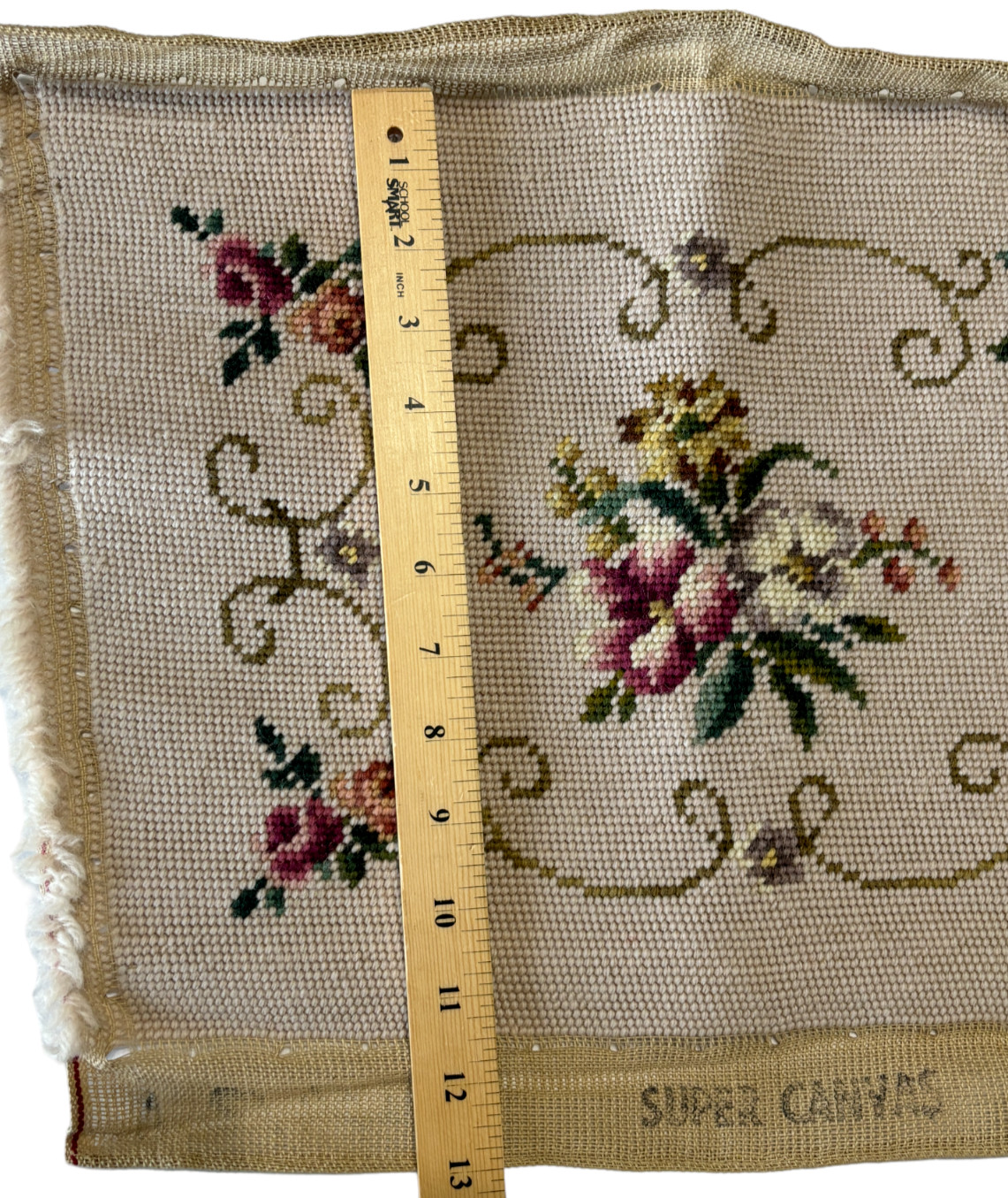 Completed Needlepoint Floral Roses Flowers Super Canvas 16 X 12 Vintage