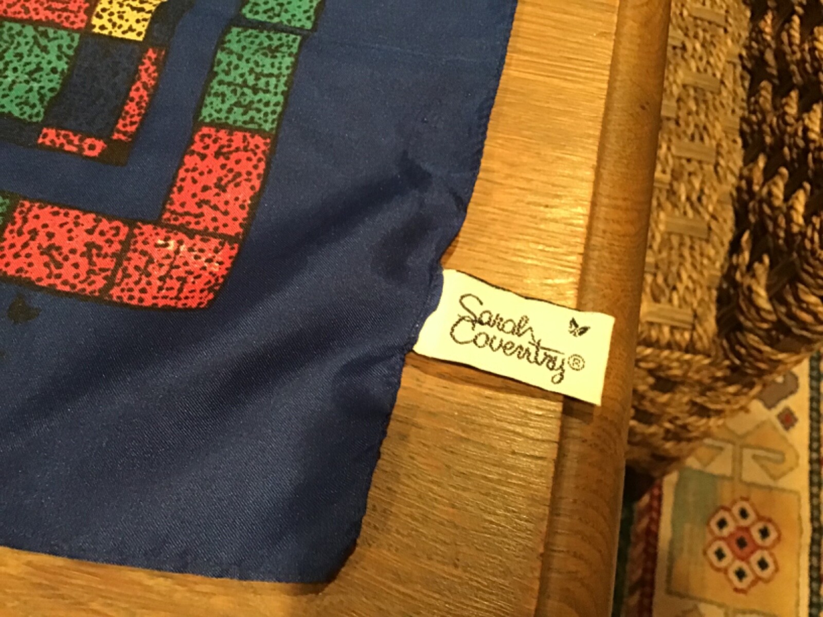 как выглядит SIGNED SARAH COVENTRY 100 POLYESTER SCARF MULTI COLOR GEOMETRIC SQUARES - ITALY фото
