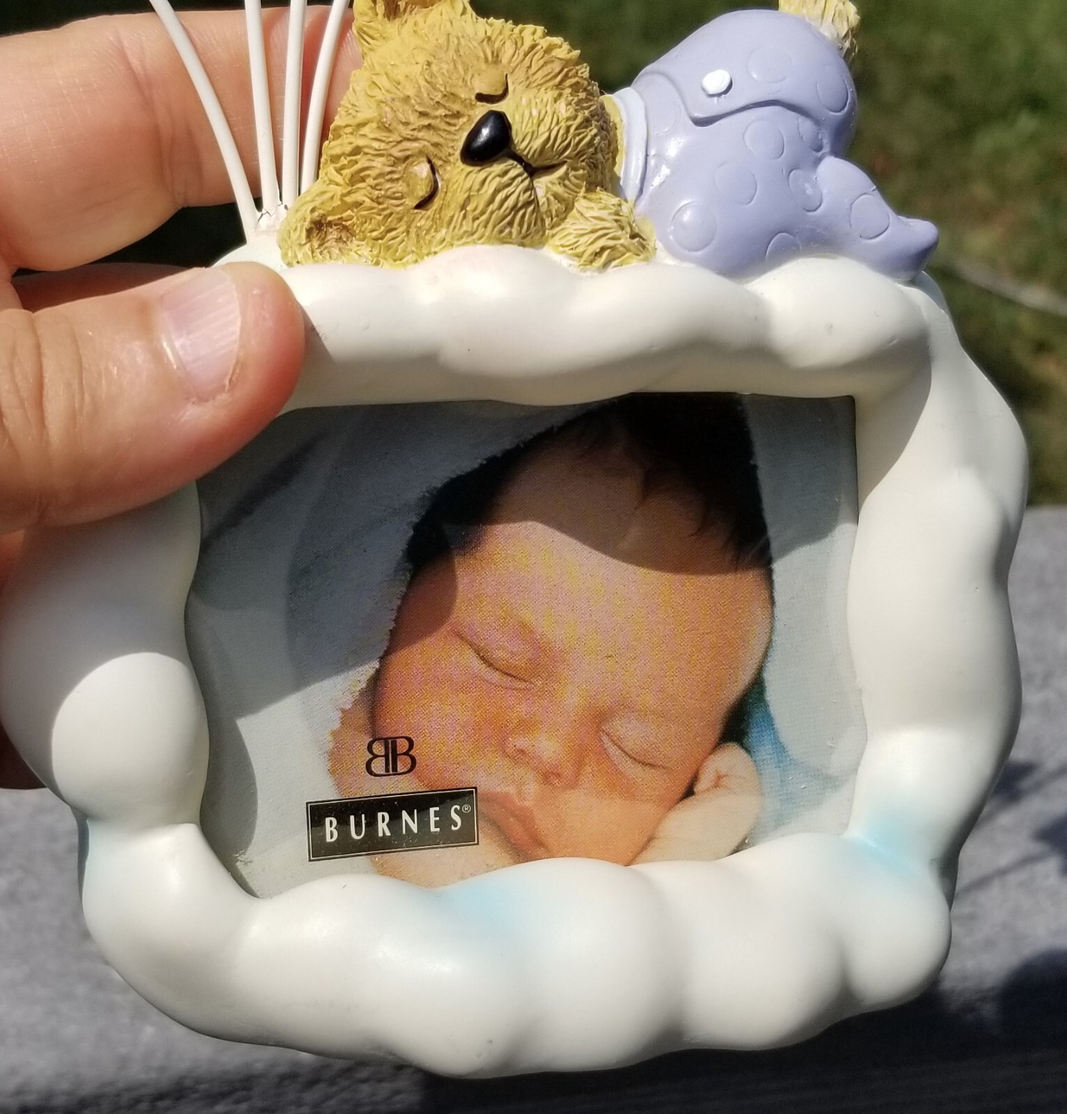 как выглядит BABY NURSERY PICTURE FRAME FOR 2X3 PHOTO CLOUD STARS SLEEPING BEAR BURNES фото