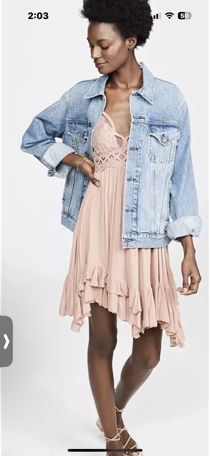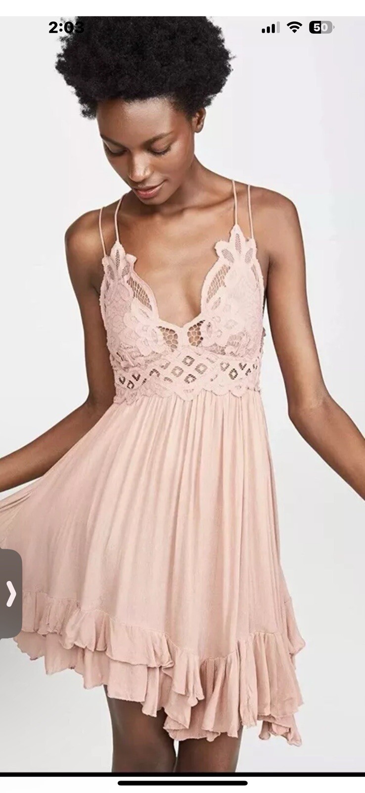 как выглядит NWT Free People Adella crochet Lace maxi boho Slip Smock Rose women dress XS A5 фото