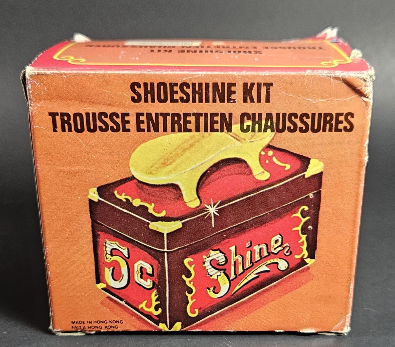 Vintage Travel Shoe Shine Kit In Decorative Tin 5 Cent Shine Made In Hong Kong