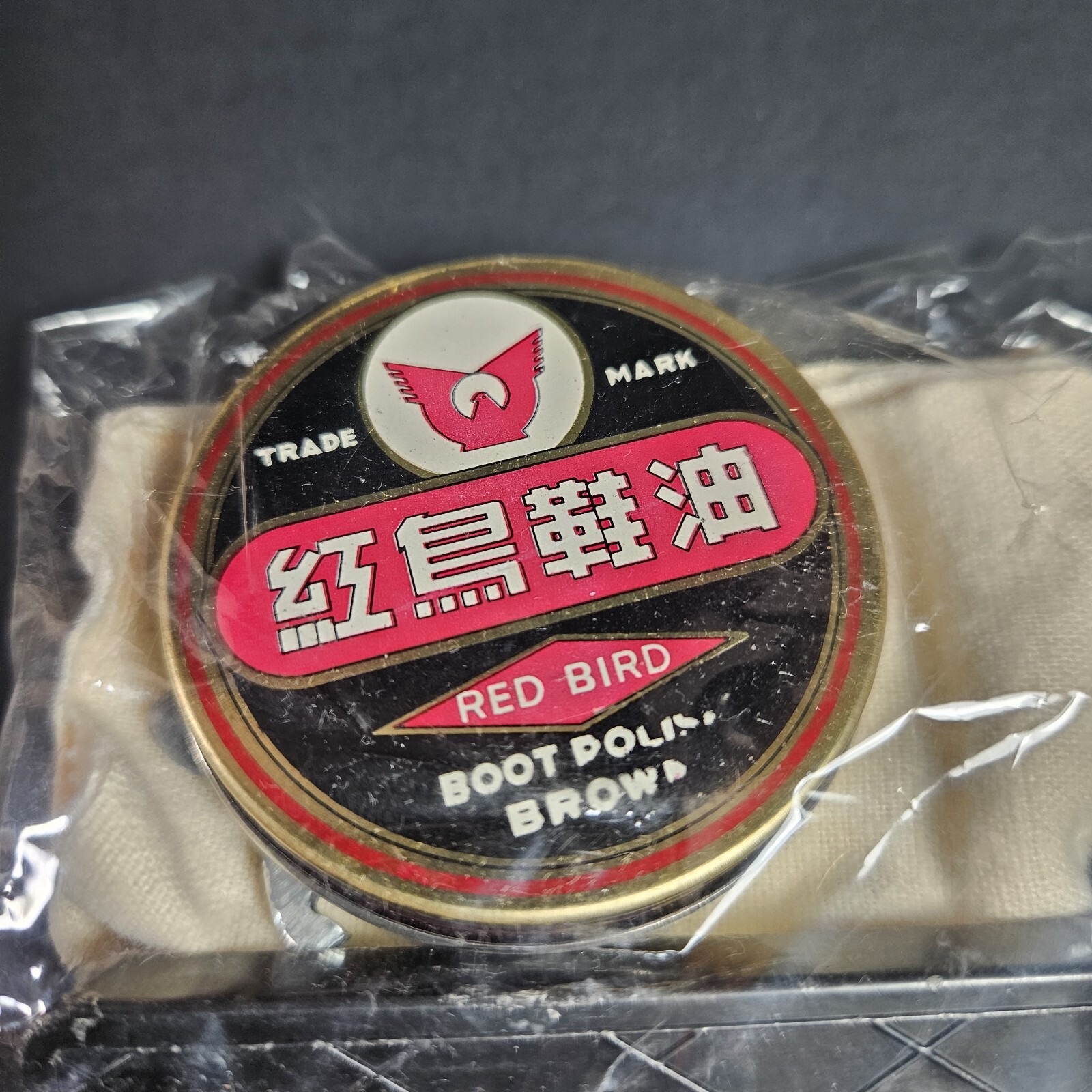 • Vintage Travel Shoe Shine Kit In Decorative Tin 5 Cent Shine Made In Hong Kong