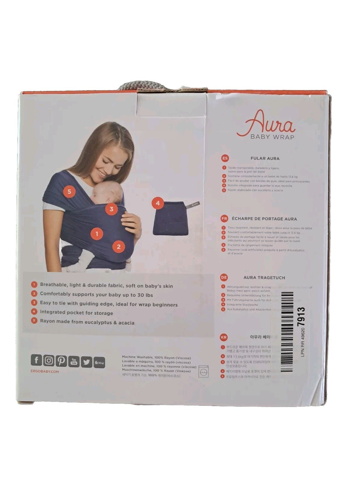 как выглядит Ergobaby Aura indigo blue lightweight baby wrap newborn 8-30 pounds фото
