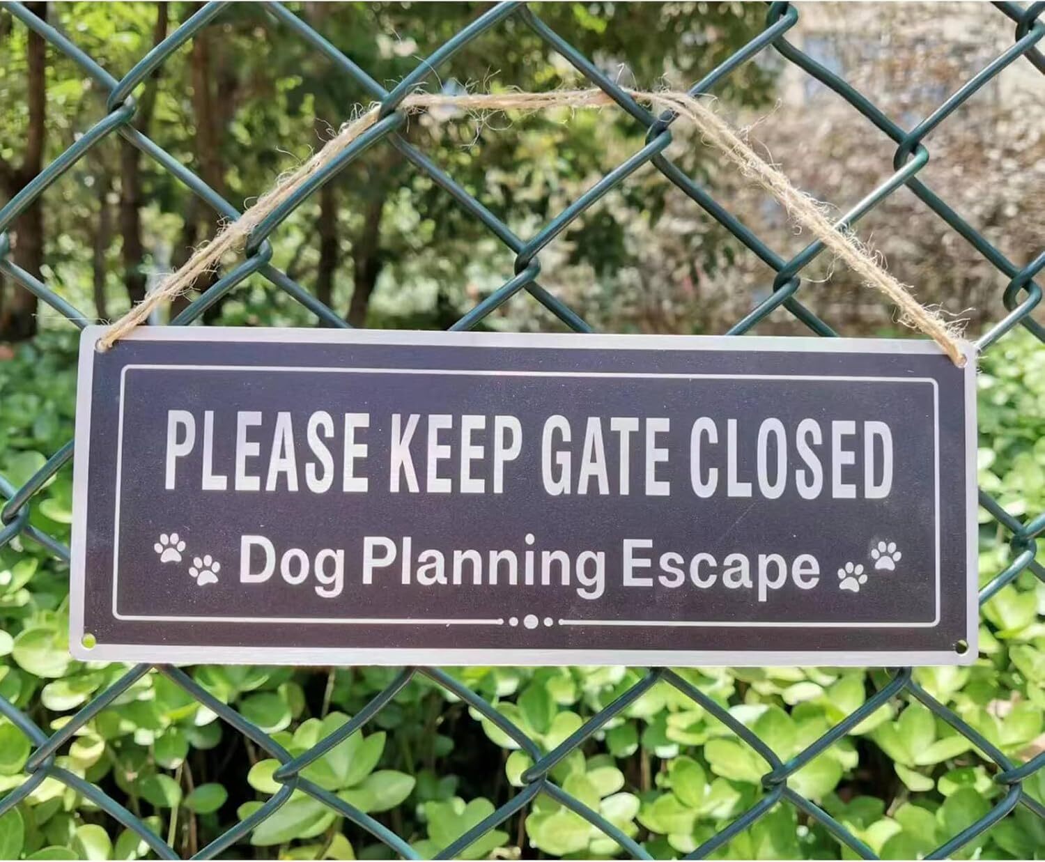 2 Pack Please Close The Gate Matal Sign - Dog Planning Escape - Brown
