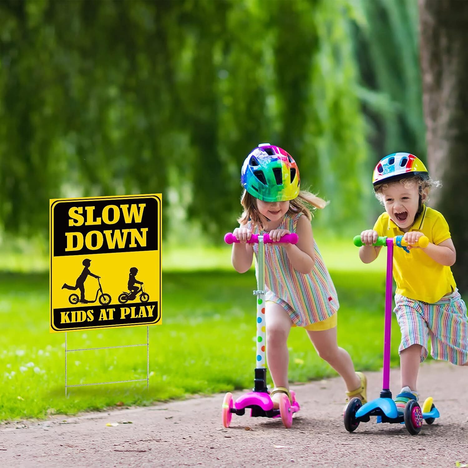 Slow Down Kid at Play Sign 15.5 x 13 Inch Double Sided 15 5x13 inches, red