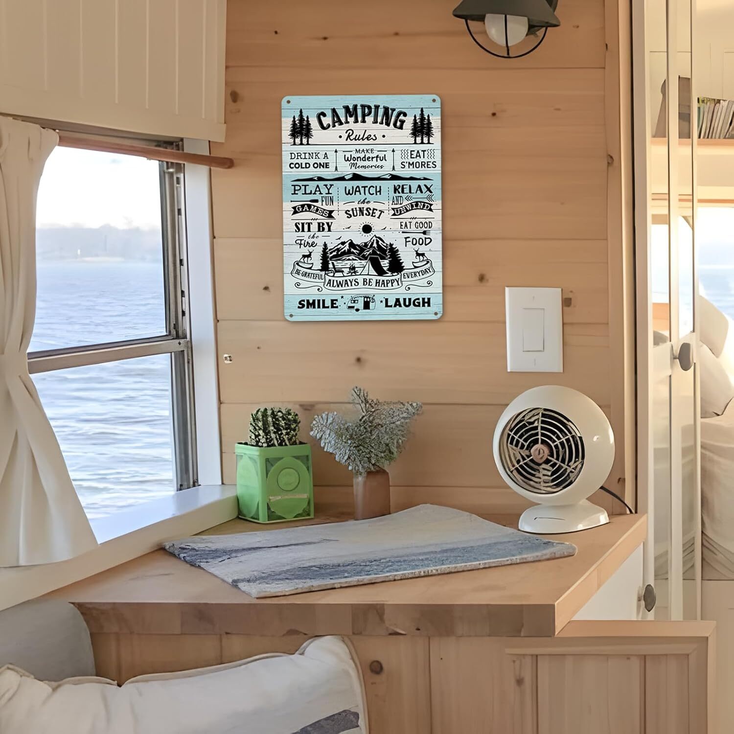 Camping Rules Sign Funny Wall Decor For Camper, Cabin, Rv Blue