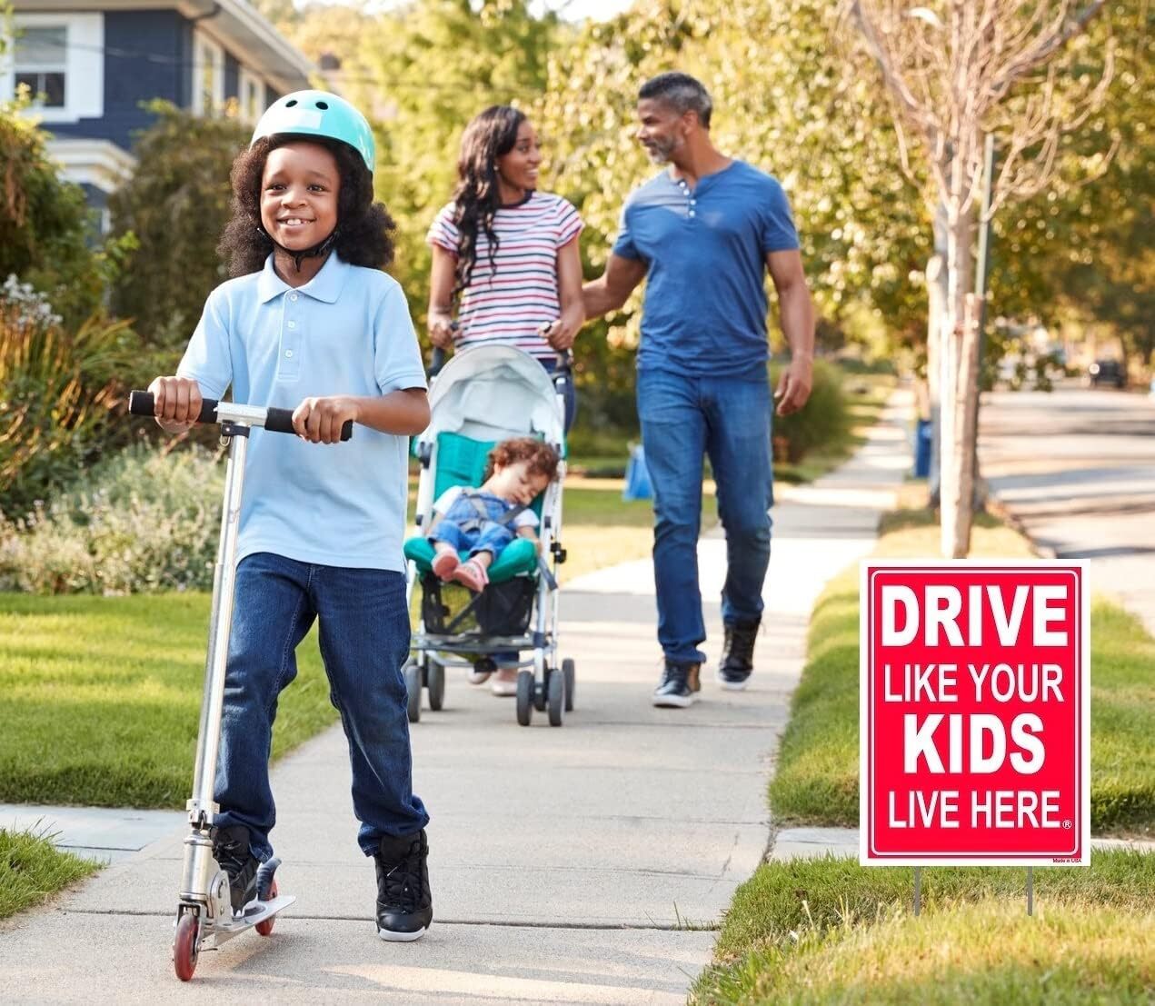 Drive Like Your Kids Live Here Yard Sign 2-Pack , Double Sided, Red