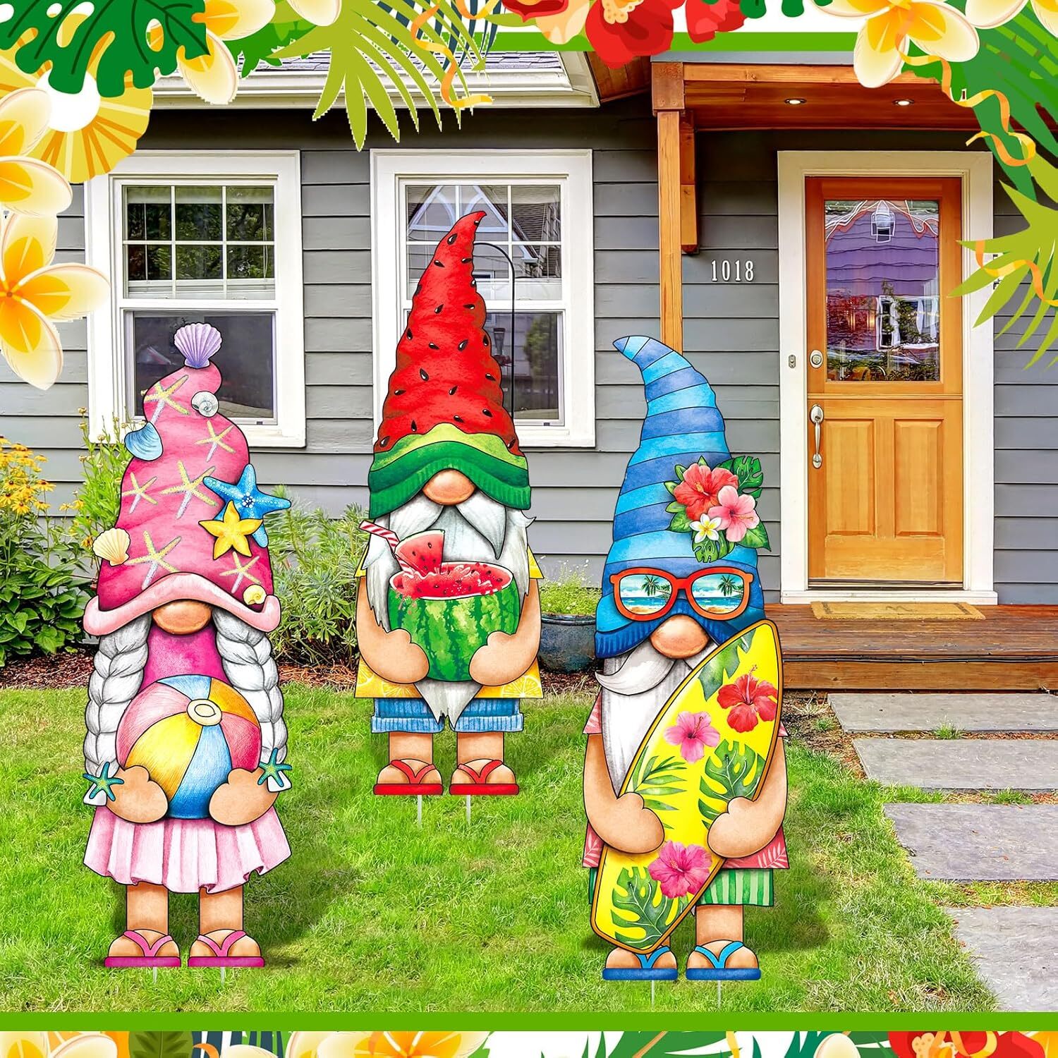 3 Pcs Summer Yard Sign Gnome Outdoor with Stakes 32 x 10 Inch...