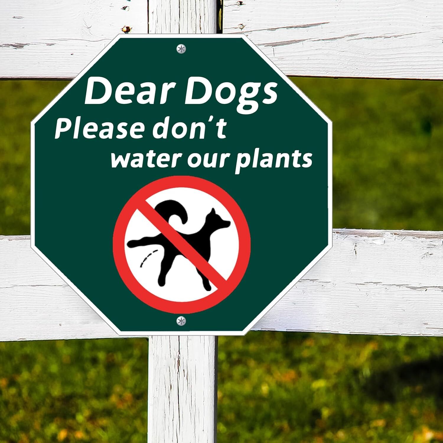 Dear Dogs Please Don't Water Our Plants,Funny Dog Yard Sign with Green White